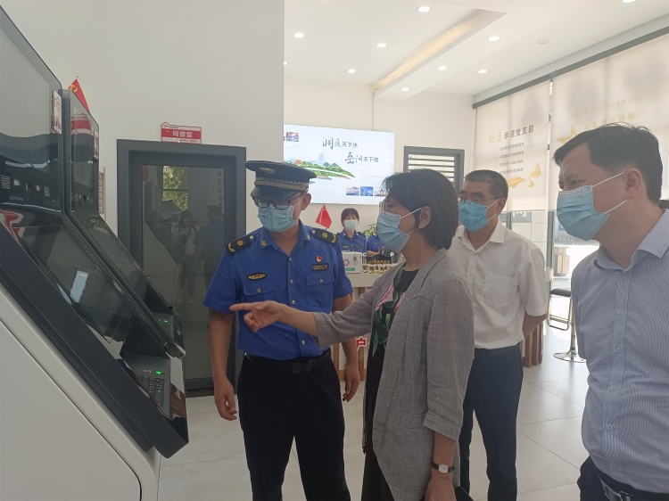 傅筝一行首先来到高铁岳阳东站工会户外劳动者服务站点,听取负责人对站点运行情况的介绍,察看站点内各项服务设施,并勉励站点工作人员继续做好相关工作,切实为职工群众做好事办实事解难事。