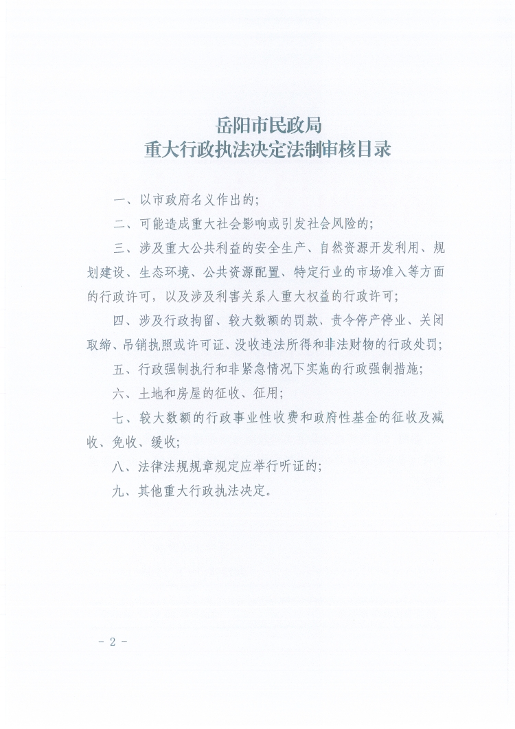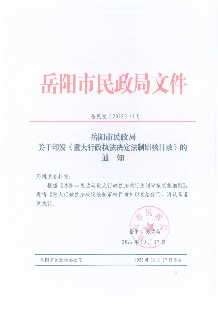 岳阳市民政局关于印发《重大行政执法决定法制审核目录》的通知