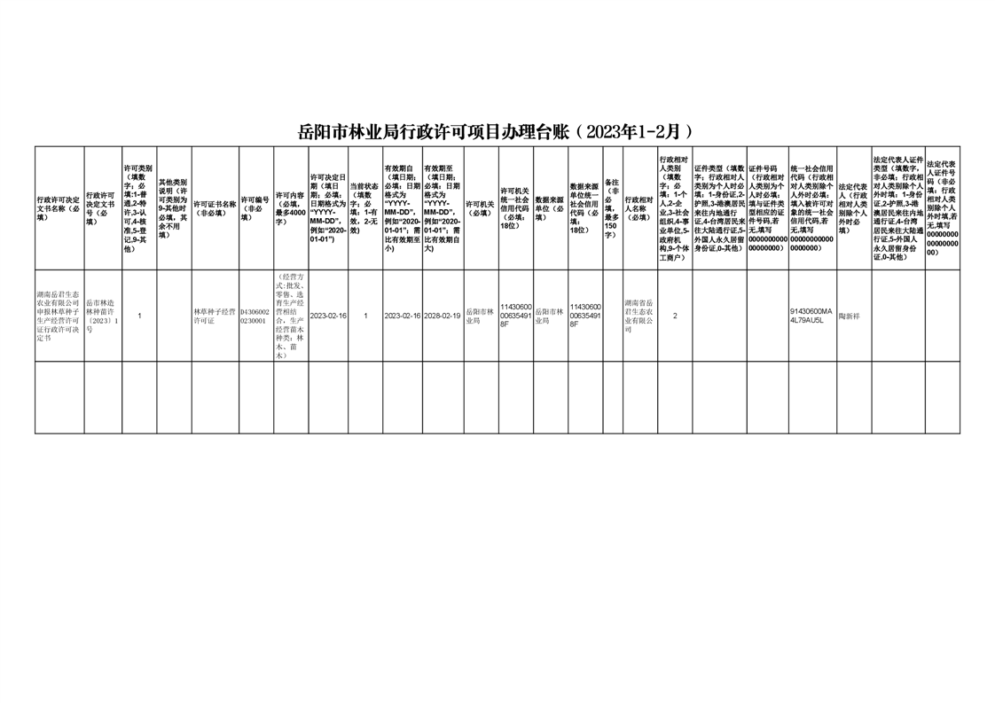 岳阳市林业局行政许可项目办理台账(2023年1-2月)