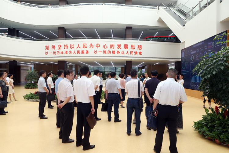 李爱武一行先后到宁乡规划馆、政务服务中心实地考察,详细了解市民之家行政审批服务、民生服务平台、智慧城市运营等情况。