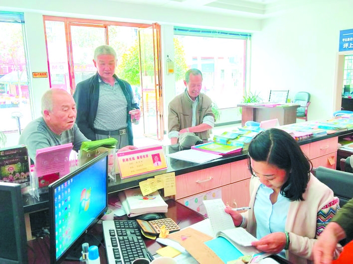 平江县城关镇坪上社区居民服务中心工作人员认真为群众办事