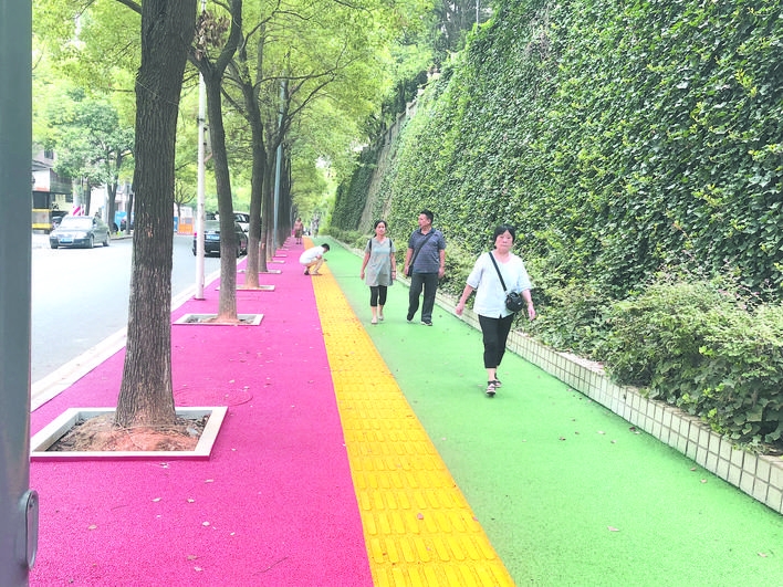市民特意走上人行道,体验“彩虹大道” 陈 垦 摄
