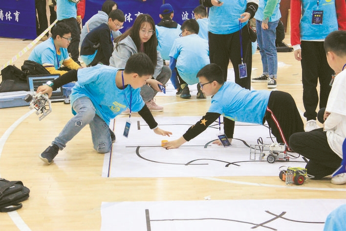 本届大赛以“智能时代的追梦人”为主题,全市235支代表队共520名选手参加了中鸣超级轨迹赛、FLL机器人挑战赛、超级轨迹赛、创意编程赛等11个项目的角逐。比赛现场气氛紧张热烈,参赛队伍队员之间紧密分工协作,在规定时间内现场完成机器编程、设备调试,最后完成预设任务或对战。