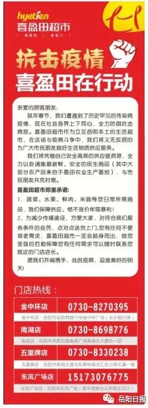 【线下卖场】 1.米面油等生活必需品充足,叶菜每天有售。2.为了大家的健康,请佩戴口罩,进入卖场时需要测量体温,请谅解。3.建议大家非必要别出门。4.客服电话:0730-8138511,0730-8138512。