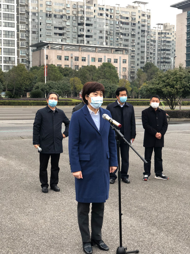 李爱武宣布援助车队正式出发,她说,在这次抗击疫情中,岳阳得到了全国各地和社会各界的关心、支持和帮助,对此我们心存感念,同时也深切感受到,在灾难面前,我们都是命运共同体,只有守望相助,才能共克时艰、共渡难关。目前,湖北依然是疫情最严重的地区,在党中央的号召和统筹下,全国各地都在以不同的方式驰援湖北,岳阳也责无旁贷。一湖分两岸,湘鄂一家亲。今天我们送往疫区的,不仅是紧缺的生活物资,更是岳阳人民对黄冈人民的一份深情厚谊。我们坚信,只要众志成城、同舟共济,我们就一定能够战胜疫情,迎来摘掉口罩、拥抱春天的日子。