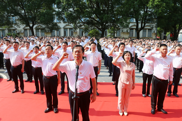 百年征程波澜壮阔,百年初心历久弥坚。6月25日上午,岳阳红色教育展览馆开馆暨新党员代表宣誓仪式在市委党校举行。市委书记王一鸥,市委常委、市委宣传部部长马娜为展览馆揭牌。随后,王一鸥带领新党员代表进行入党宣誓、老党员重温入党誓词,活动由市委常委、市委组织部部长谢群主持,市委党校常务副校长王伊亮,市委组织部、市委宣传部、市委党史研究室、市委党校、市城投集团有关负责同志,2021年新党员代表,市委组织部机关全体党员,市委党校主体班学员共400余人参加。