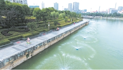 目前,沿南湖北岸共安装了220台,通过该装置吸起并甩出湖下低温贫氧水,可平衡水体各层的温度和化学成分,增加水中含氧量,提高水生动植物的成活率,在改变水体观感的同时,无形中也为南湖增添了一道美丽风景。