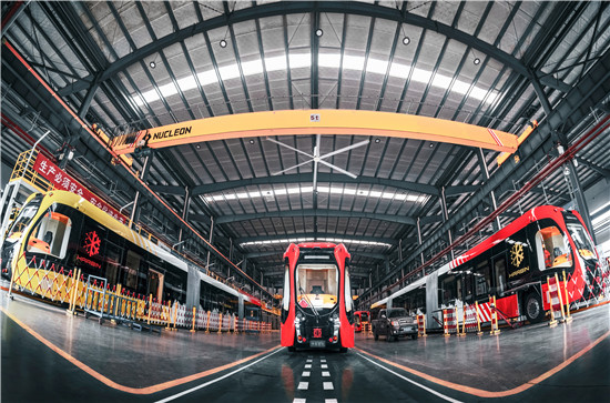 中车株洲所全球首创的智能轨道快运系统生产车间。株洲市委宣传部供图