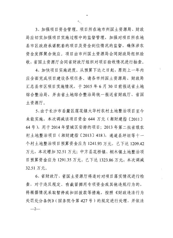 湖南省财政厅 湖南省国土资源厅关于下达2014年市县农村土地整治项目资金的通知