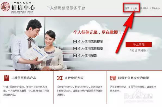 第二步:点击“登录/注册”,如果您还没有征信中心官网的用户,需要填写个人信息注册,如果有用户,直接登录即可。
