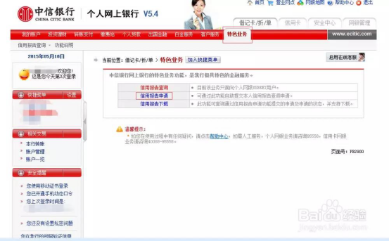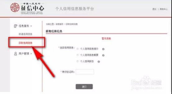 如果持有中信银行或招商银行借记卡的用户,可使用银行发放的U盾(Ukey)登录网银,找到个人信用报告查询选项后,按照提示操作即可获取。