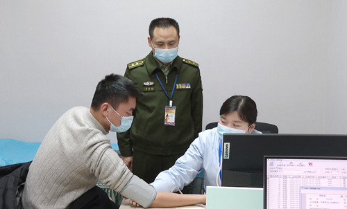 在市人民医院健康管理中心,前来应征的有志青年在工作人员的指引下,依次进行内科、外科、耳鼻喉科、心电图、血压、心率等项目检查。医护人员分工明确,恪守职责,严把体检关。廉洁征兵监督员、征兵办工作人员现场督导。