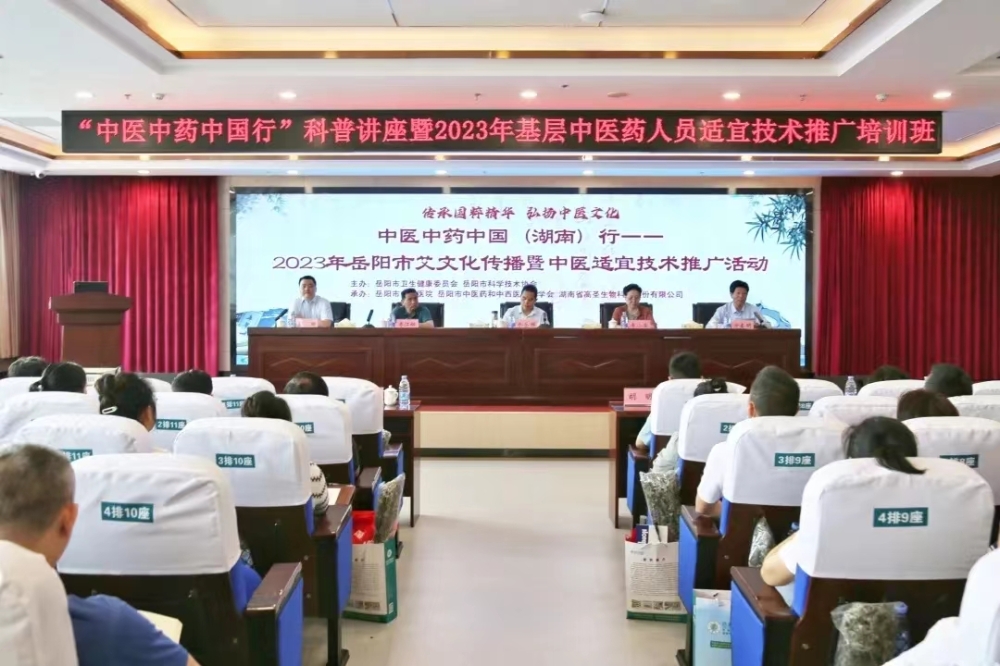 6月4日,中医中药中国(湖南)行──2023年岳阳市艾文化传播暨中医适宜技术推广活动在岳阳市中医医院举行。岳阳市卫健委党组书记、主任余岳雄,党组成员、工会主席李江辉,中医药管理科科长赖连科,岳阳市中医医院党委书记方奎明、院长黎珊、医院班子成员、职能科室负责人以及来自全市基层医疗机构的300余名中医药工作者参加活动。
