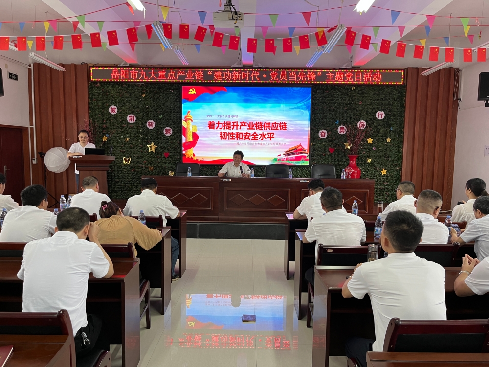 为庆祝中国共产党成立102周年,继承和发扬党的优良传统和作风,充分发挥基层党组织战斗堡垒和广大党员先锋模范作用,促进两新党建与产业链建设深度融合。6月30日,市九大重点产业链综合委员会副书记、市工信局二级调研员、市链办副主任胡向荣带领中共岳阳市九大重点产业链综合委员会和中共岳阳市中小企业服务中心支部开展“建功新时代·党员当先锋”主题党日活动。市九大重点产业链综合委员会委员张智慧、市中小企业服务中心党支部书记荀志方、市链办全体干部、市工信局党员代表、市中小企业服务中心全体干部职工以及先进装备制造、文体旅游、电力新能源、现代物流等产业链党建联盟代表等20余人参加活动。