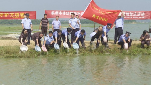 9月5日上午,市人民法院、市人民检察院、市公安局、市农业农村局在黄盖湖水域联合开展非法捕捞水产品案生态环境损害赔偿增殖放流活动。