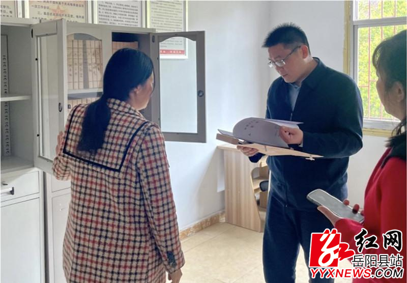 3月30日,肖湘晖在荣家湾镇文胜社区查看台账资料