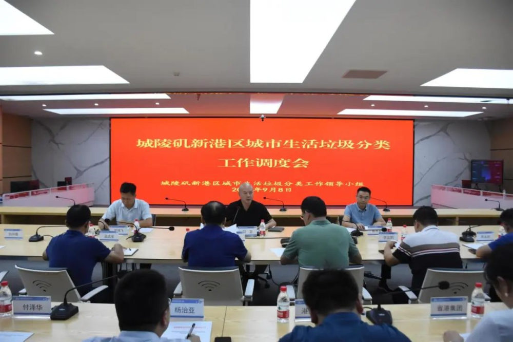 9月8日,城陵矶新港区党工委委员、管委会副主任胡卫主持召开新港区城市生活垃圾分类工作调度会,党工委委员、纪工委书记、监工委主任陈书金,及相关部门(单位)负责人、企业联点干部代表、示范企业负责人参加。