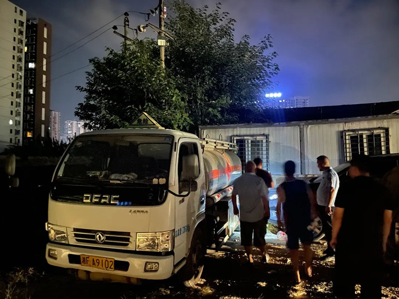 9月10日晚,岳阳经济技术开发区应急管理局接市民举报称,107国道西侧皇姑塘立交桥段一家停车场内,有两辆油罐车正在进行装卸作业,涉嫌非法存储、销售成品油。岳阳经济技术开发区应急管理局副局长赵军、执法大队大队长汪祥迅速带领执法人员与通海路管理处、八字门社区工作人员先后赶到现场调查取证。