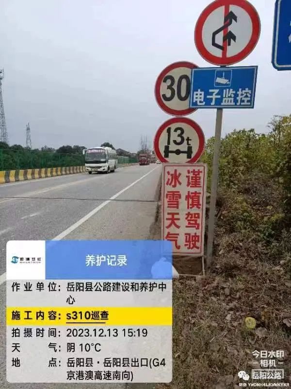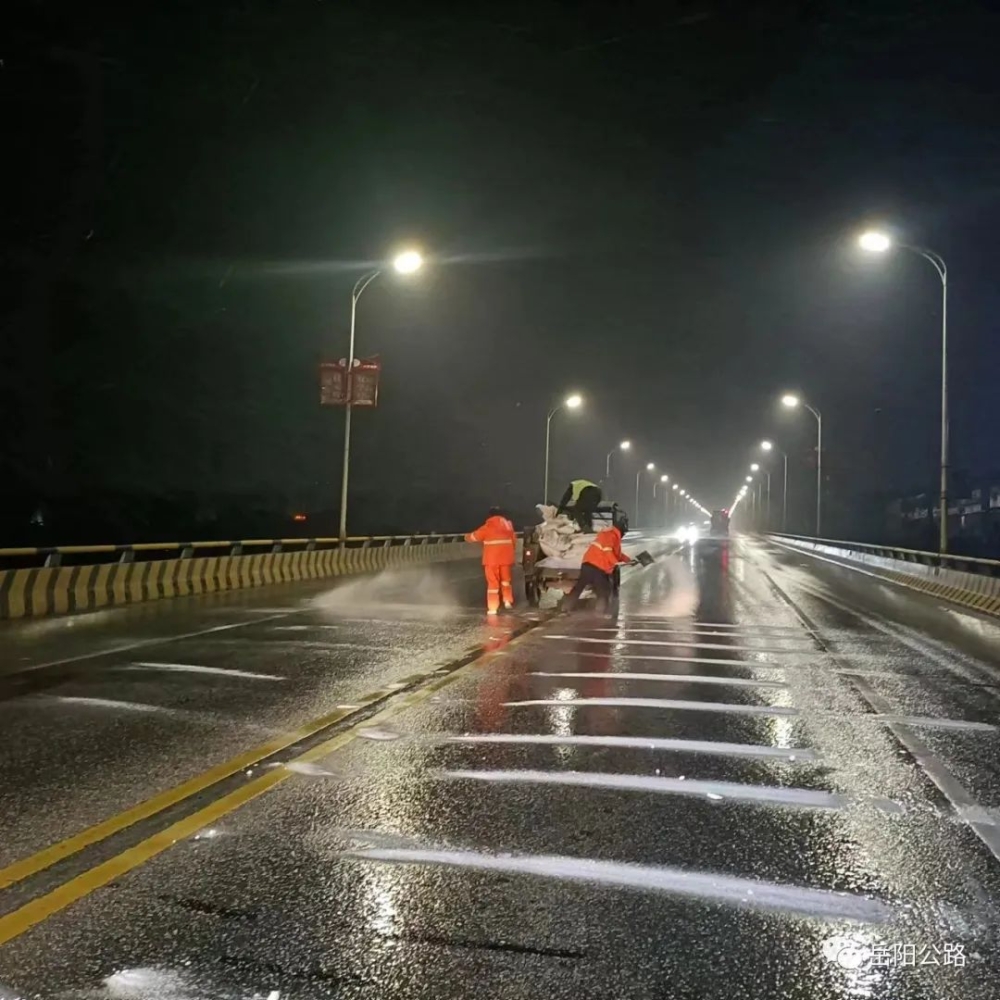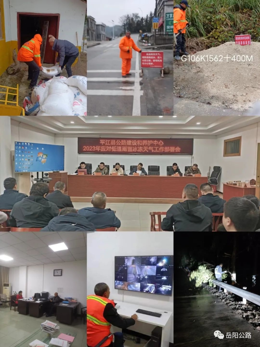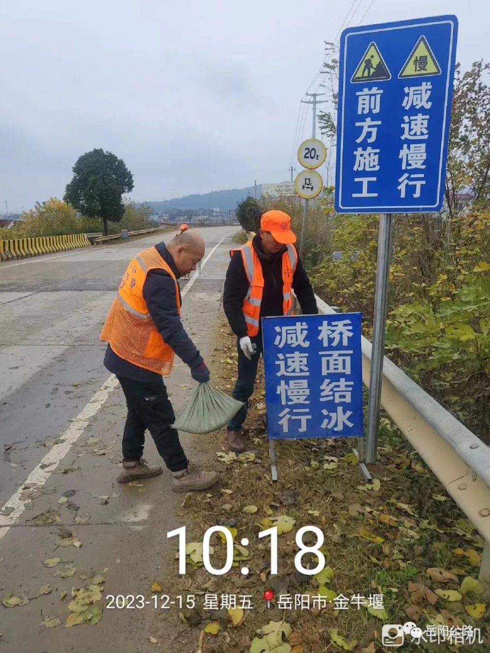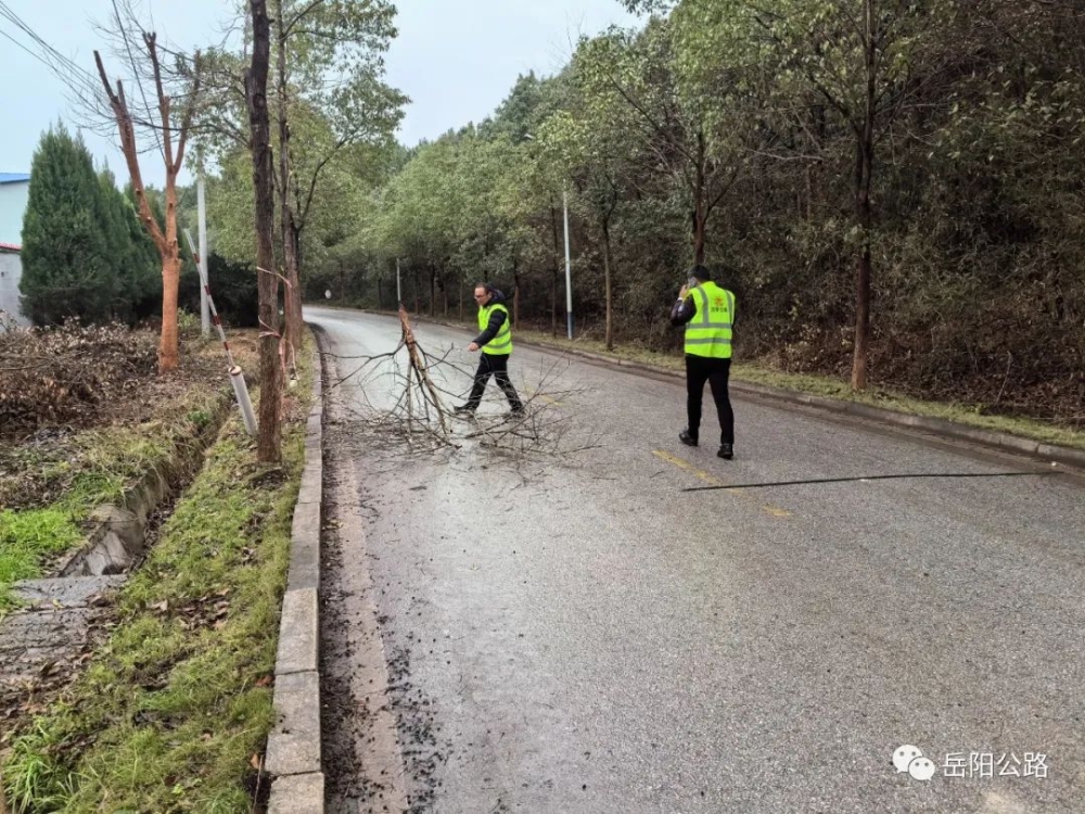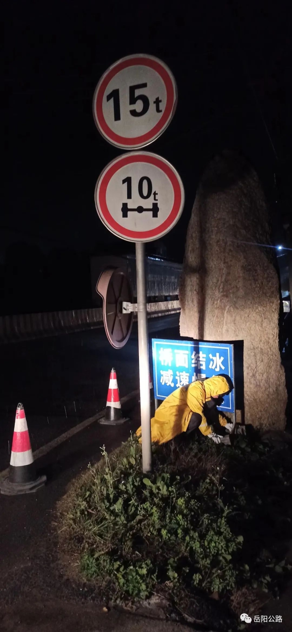岳阳县公路建养中心强化值班值守,养护人员到岗到位,应急队伍整装待发,机械设备随时待命,开展路面巡查,并做好安全提示工作。