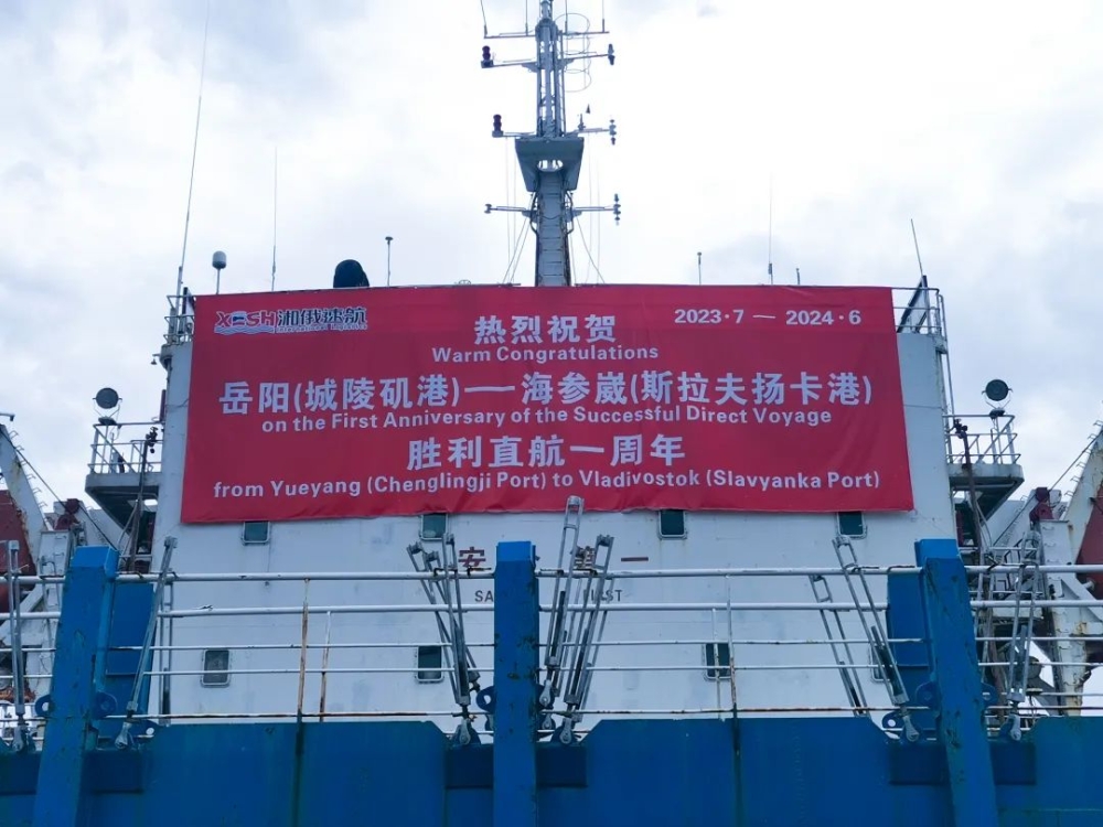 “岳阳城陵矶港—俄罗斯海参崴”直航航线顺利运行一年的背后,是湖南省打造五大国际物流通道,岳阳城陵矶江海联运集结中心的迅速发展,也是新港区加快建设“一主一特”现代化产业体系的真实写照。