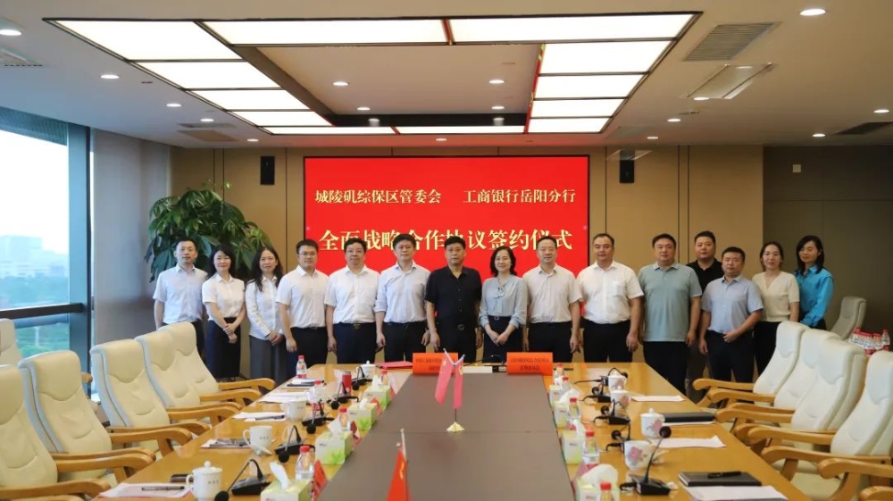 7月25日,城陵矶综合保税区管委会与工商银行岳阳分行签订全面战略合作协议,助力园区更高水平开放和高质量发展。工商银行湖南省分行党委委员、副行长秦谭平,工商银行岳阳分行党委书记、行长周昌立,党委副书记、副行长周灿辉,城陵矶新港区党工委副书记、综保区管委会主任严菲,党工委委员、综保区管委会副主任宋振权,及相关部门、企业负责人参加。