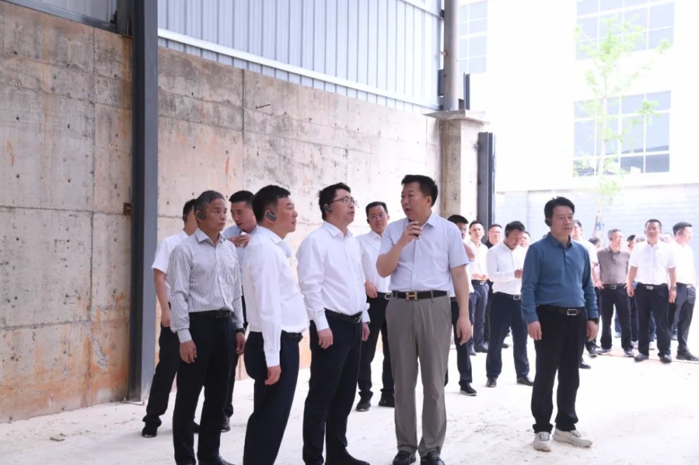 ▲刘世奇、张永久等与会人员在乐升新材料科技有限公司观摩。