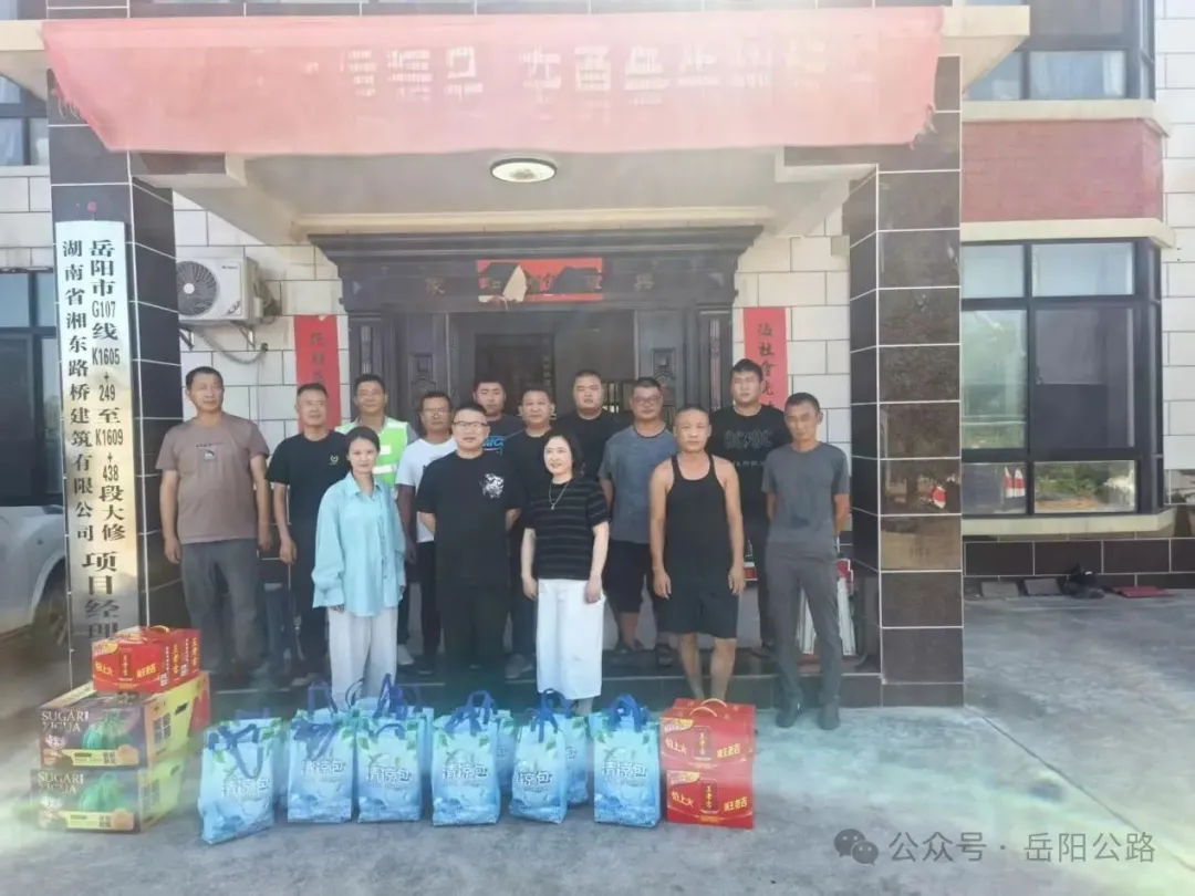 夏日高温持续,热浪席卷巴陵大地。为切实做好夏季防暑降温工作,保障一线职工身心健康与施工安全,近日,岳阳市公路科技服务中心党委副书记万昕带队,联合工会、综合部、人事部组成慰问组,先后深入试验检测基地、G107 线岳阳段大修工程现场及 G106 线平江工程段项目部等生产一线,开展 2025年“夏日送清凉 防暑保安康”专项慰问活动。