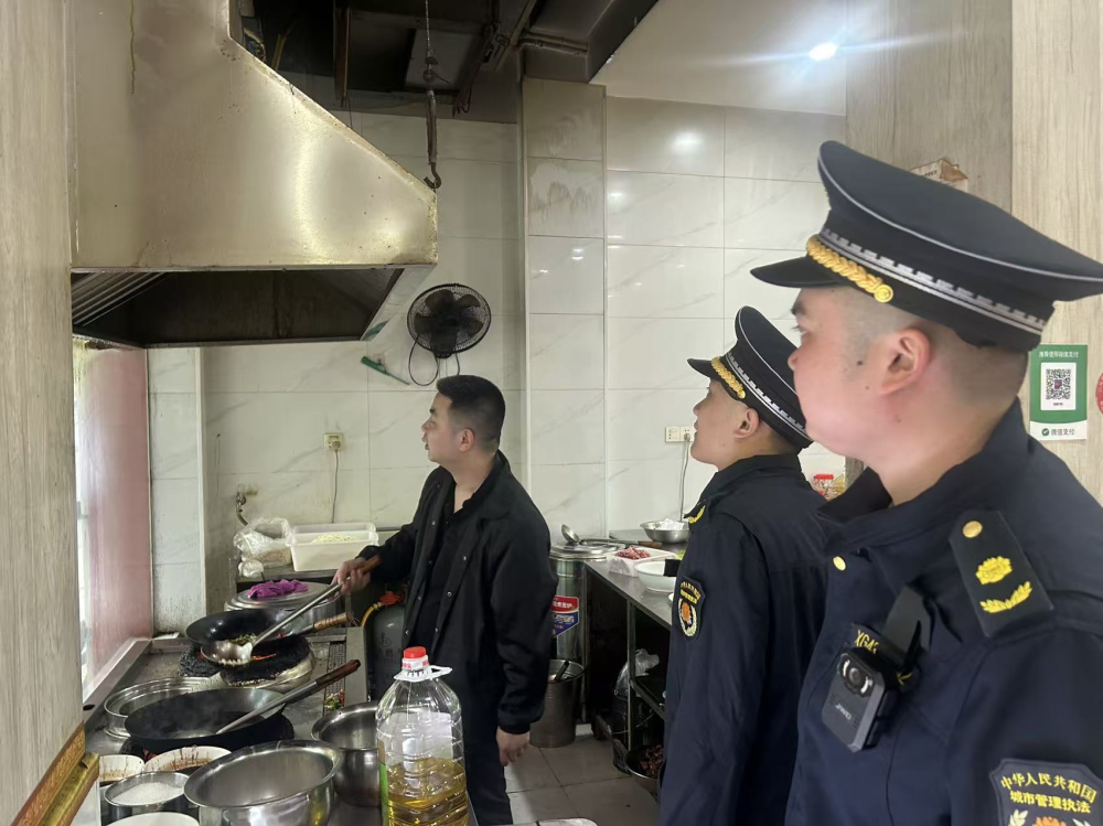 在餐饮油烟治理方面,大队采取“源头管控+常态巡查+联合处置”模式,推行“1+2”巡查机制(日间1次、夜间2次),累计出动执法人员300余人次,巡查餐饮门店、烧烤摊点180余处,依法取缔违规摊点2家。同时,完善油烟净化设施“一户一档”台账,开展设备使用情况排查,杜绝“装而不用、用而不洗”情况。针对夜间烧烤扰民问题,组建专项巡查队每日开展巡查,并配合生态环境部门推进公共油烟净化器安装,切实解决油烟排放难题。