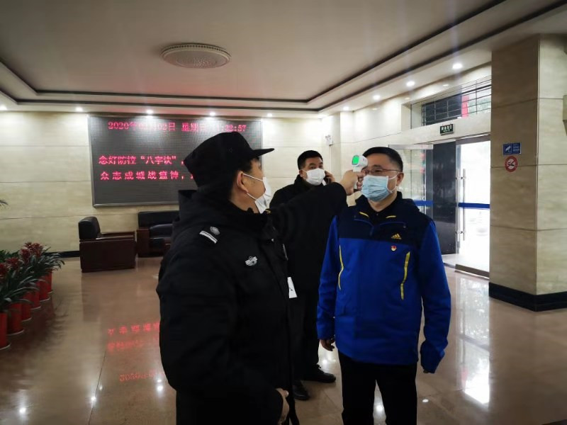 “疫情防控人人有责,无论是机关干部还是小区居民,无论是生人还是熟人,进机关、小区都要测体温,发现体温超过37.3℃的要立即报告。看好自己的门、管好自己的人是我们应尽之责,要严格落实好,切忌流于形式”。2月2日,市安委办主任、市应急管理局党组书记、局长林军华再次检查机关疫情防控工作时对物业公司负责人说。根据市突发公共卫生事件应急指挥部工作需要,春节期间,市应急管理局机关食堂为指挥部提供分装盒饭,市应急管理局全力做好服务保障和用餐管理,对食堂早中晚三次消毒,加强对食堂员工身体健康管理,进出机关进行体温测量,加强食堂用餐管理,严控进入机关食堂就餐。