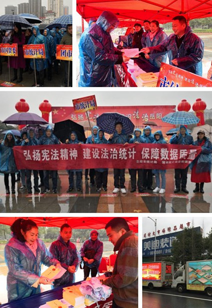 2018年第五个“国家宪法日”,岳阳市人大牵头,市委法治岳阳建设领导小组主要成员单位及协办单位等,举办了“弘扬宪法精神,建设法治岳阳”为主题的大型户外宣传活动。岳阳市统计局以此为契机,结合“四经普”的宣传工作,联合国家统计局岳阳调查队以“弘扬宪法精神,建设法治统计,保障数据质量”为主题,参与到全市的活动中来。活动现场在岳阳市户外活动中心——南湖广场。活动形式有市人大常委会副主任陈光荣讲话;现场咨询解答;宣传资料发放等。
