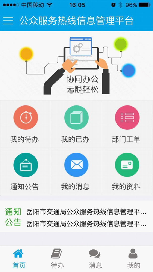 4月17日,岳阳市交通运输局正式启用公众服务热线信息管理平台。该平台整合全市交通运输系统12345、12328、市长信箱和网络舆情热线服务功能,变革传统纸质信件处理流程,实现各县交通运输局、局直二级机构的公众服务热线受理、派发、回复、处理网络电子化,实现信件办理自动化、档案管理电子化、办公运行移动化、领导监控动态化。这是市交通运输局贯彻“互联网+政务服务”建设的具体成果,标志着我局政务服务水平上了一个新台阶,政务服务能力跃升至一个新层次。