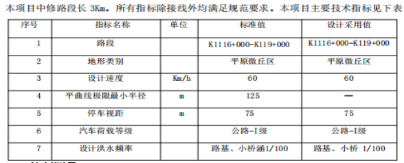 1.项目位置:项目起点新墙镇,终点为黄柏镇;主线全长 10.367公里,按II级公路标准、设计速度60公里/小时建设,路基宽12米,路面为沥青砼路面,宽12米,桥涵设计荷载为公路为II级。