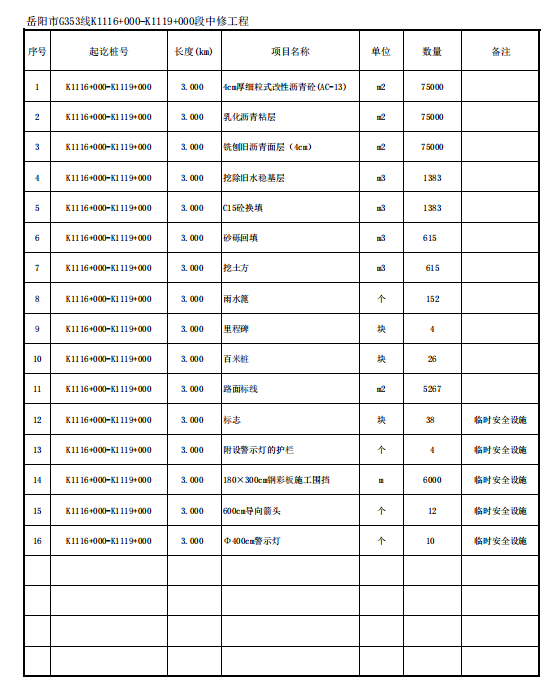 (二)岳阳市G353线K1116+000-K1119+000段中修工程项目概况: