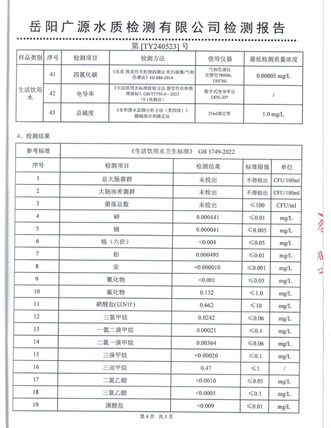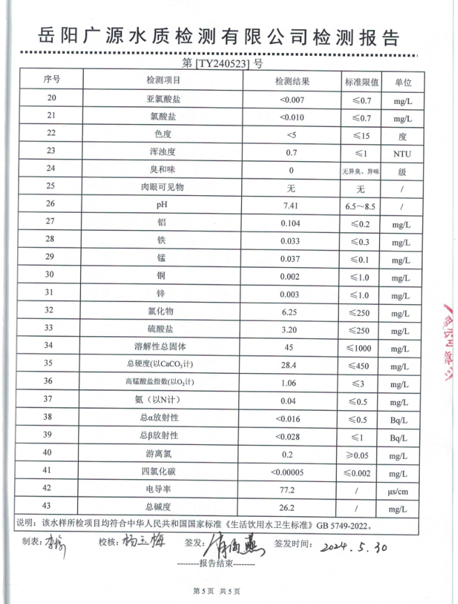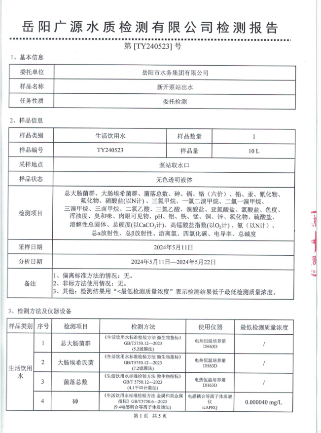 2024年5月岳阳市水务集团管网水水质检测月报表
