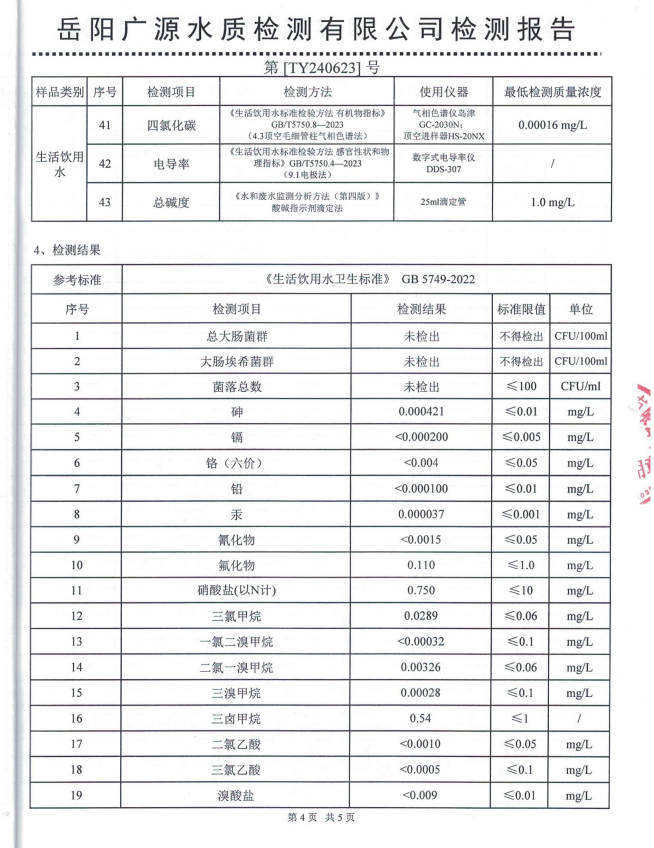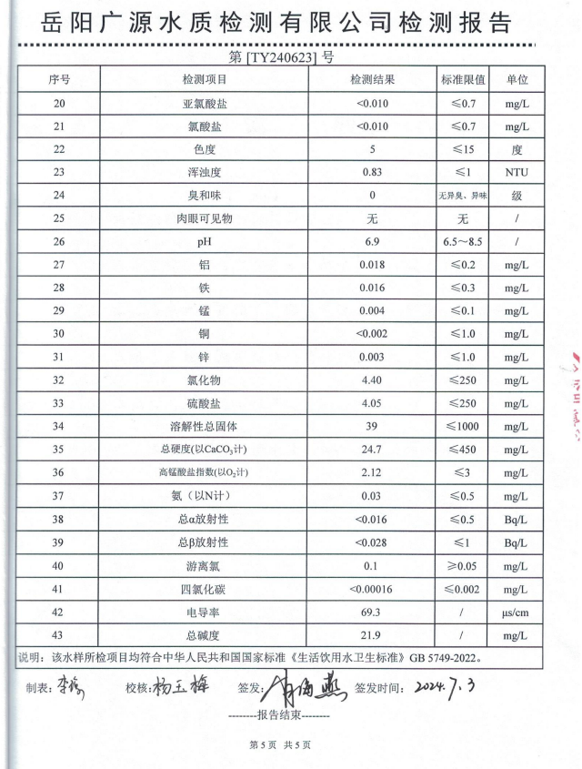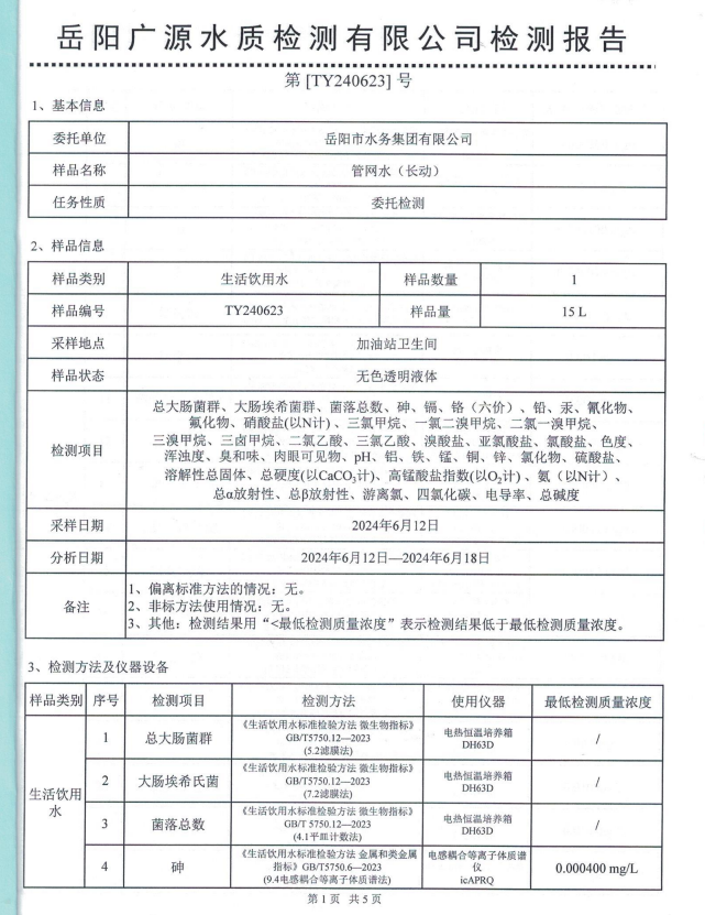 2024年6月岳阳市水务集团管网水水质检测月报表