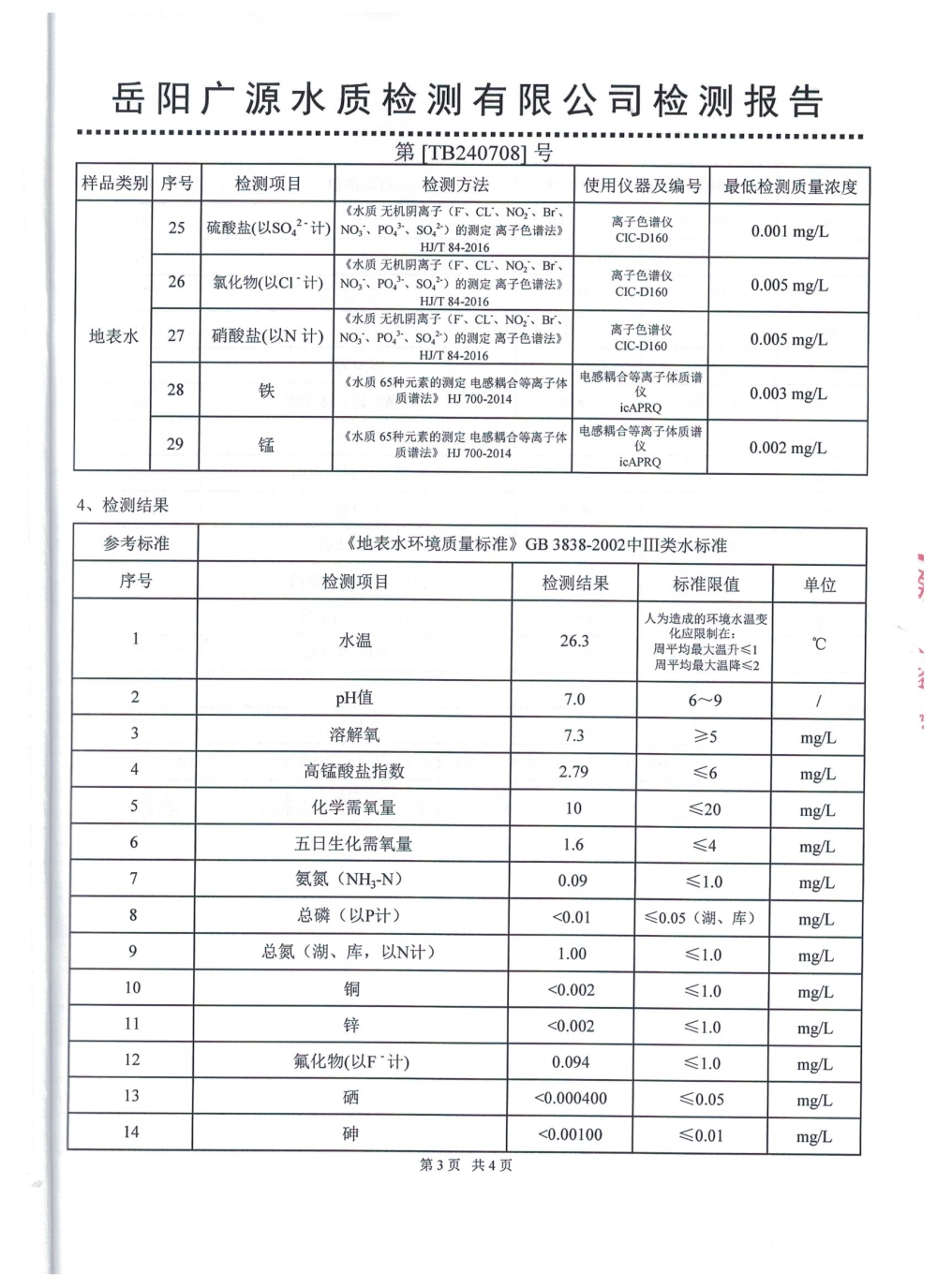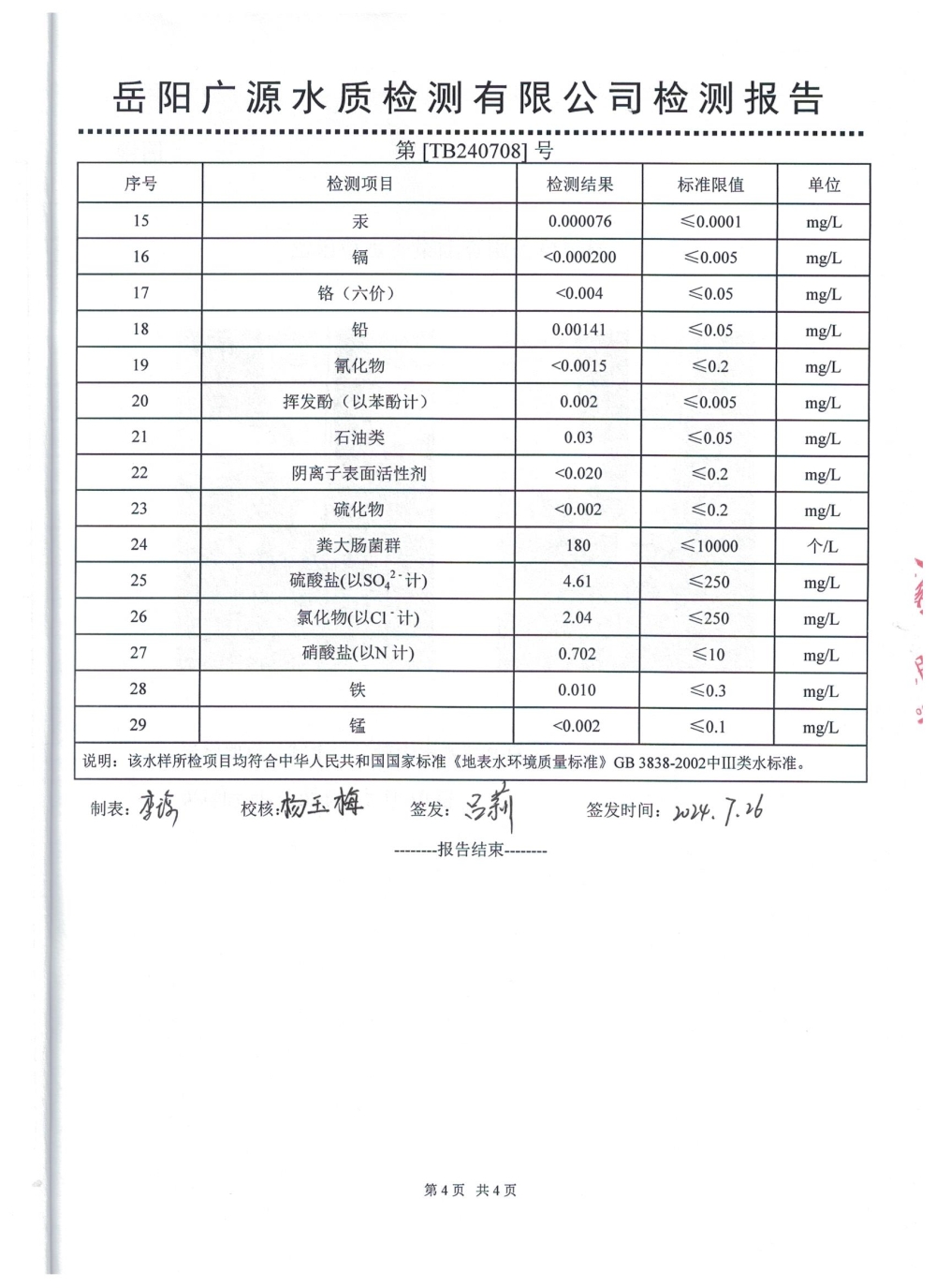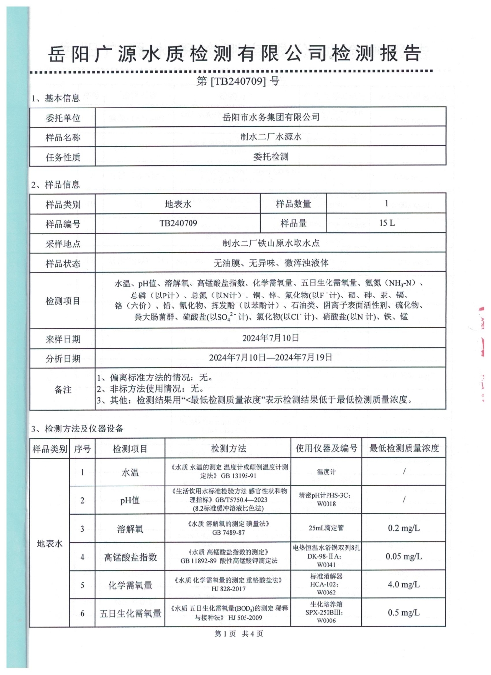 2024年7月岳阳市水务集团水源水水质检测月报表