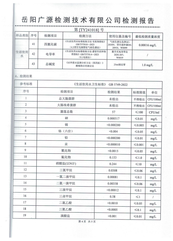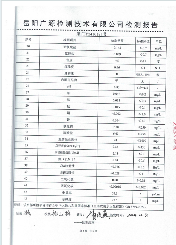 2024年10月岳阳市水务集团管网水水质检测月报表