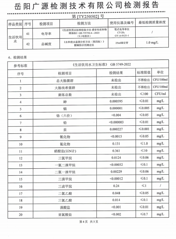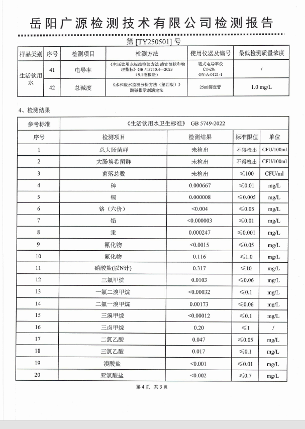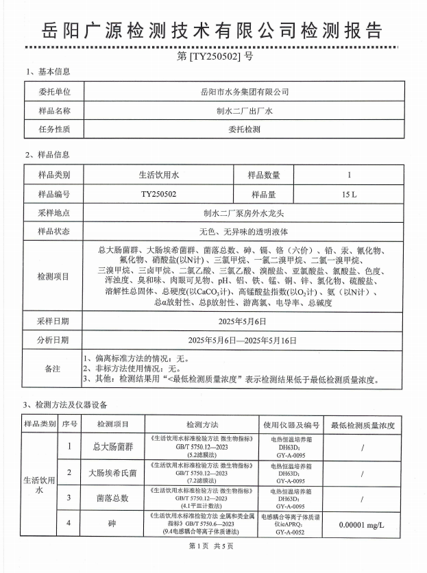 2025年5月岳阳市水务集团出厂水水质检测月报表