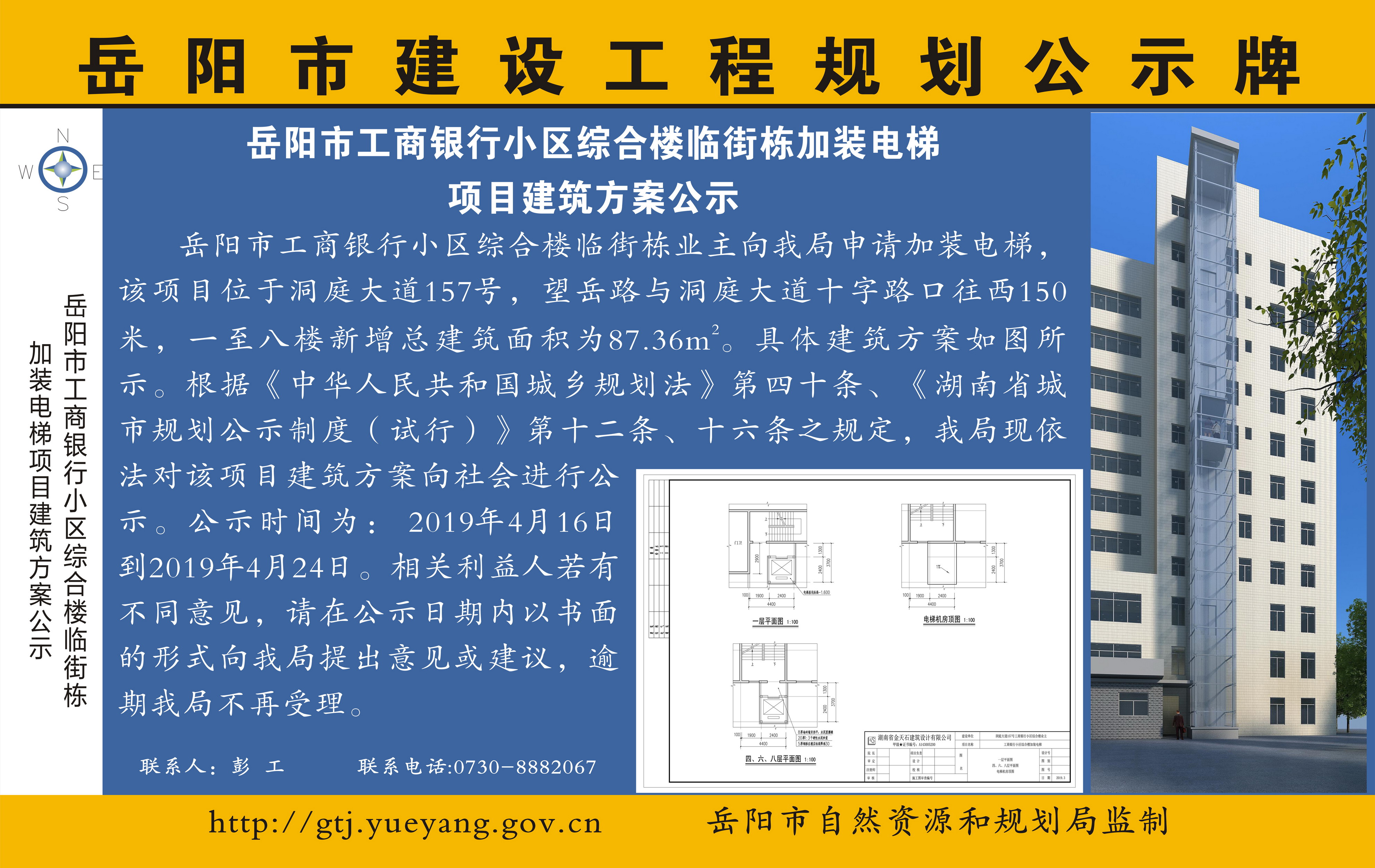 岳阳市工商银行小区综合楼临街栋加装电梯项目建筑方案公示