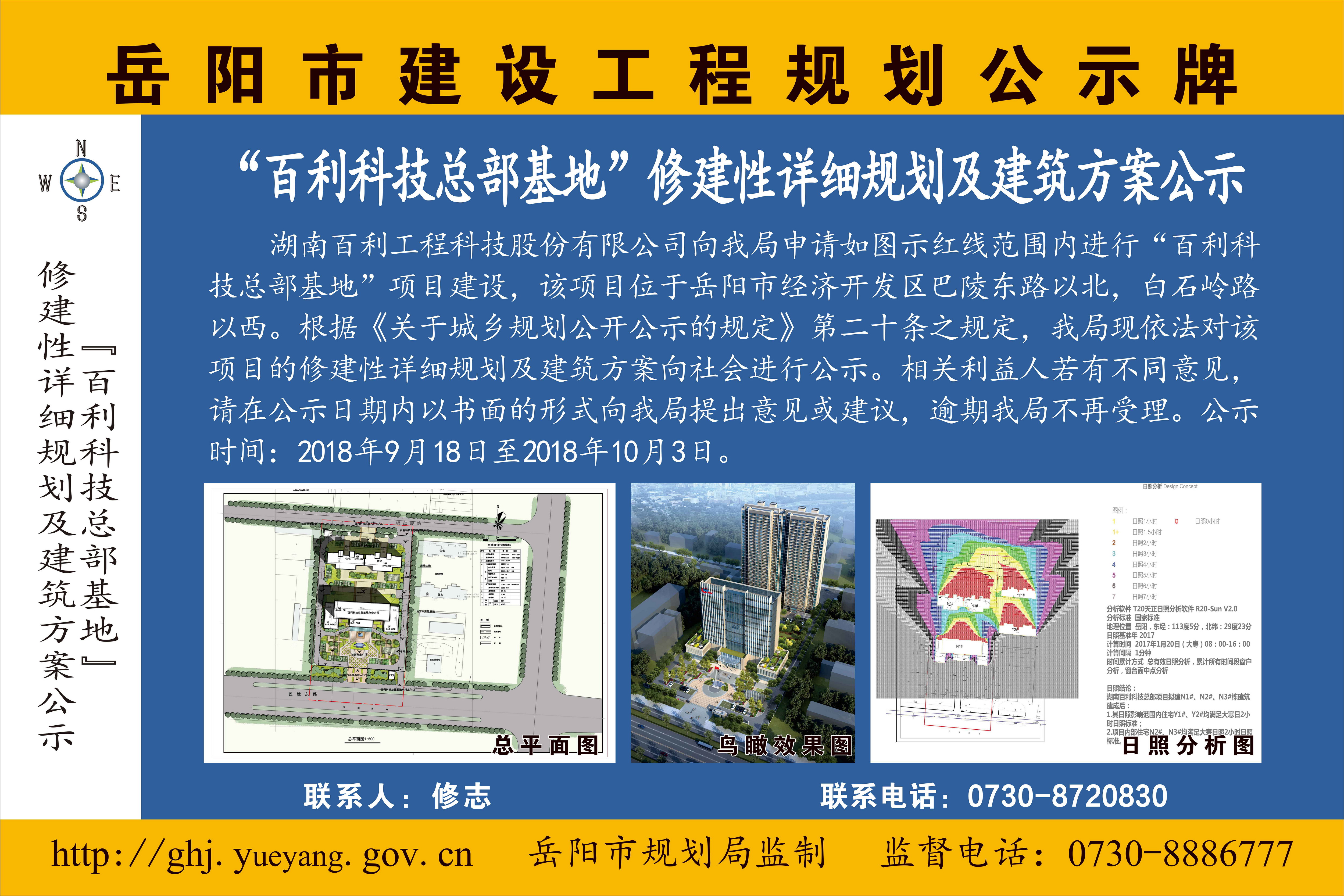“百利科技总部基地”修建性详细规划及建筑方案公示