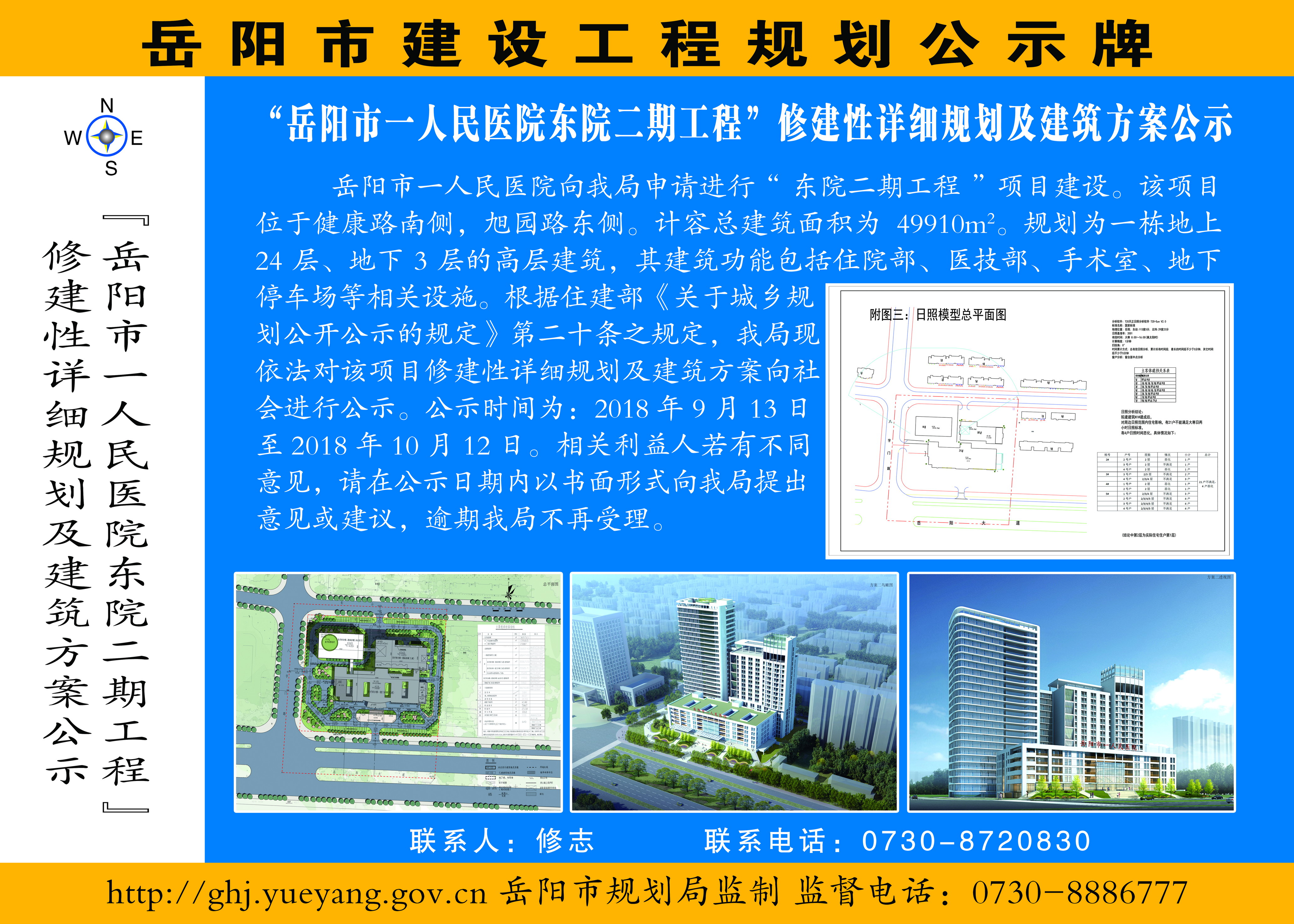 “岳阳市一人民医院东院二期工程”修建性详细规划及建筑方案公示