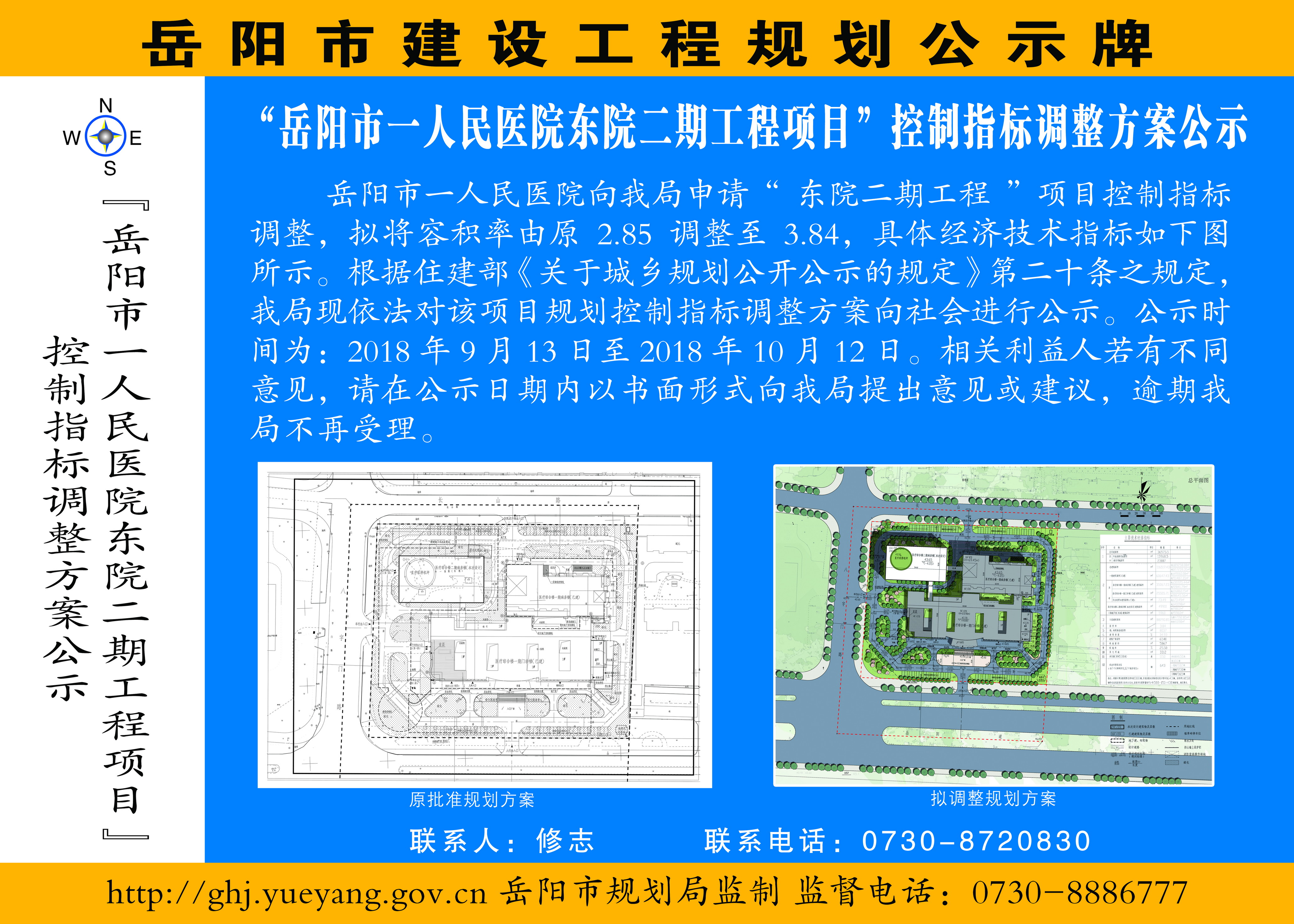 “岳阳市一人民医院东院二期工程项目”控制指标调整方案公示