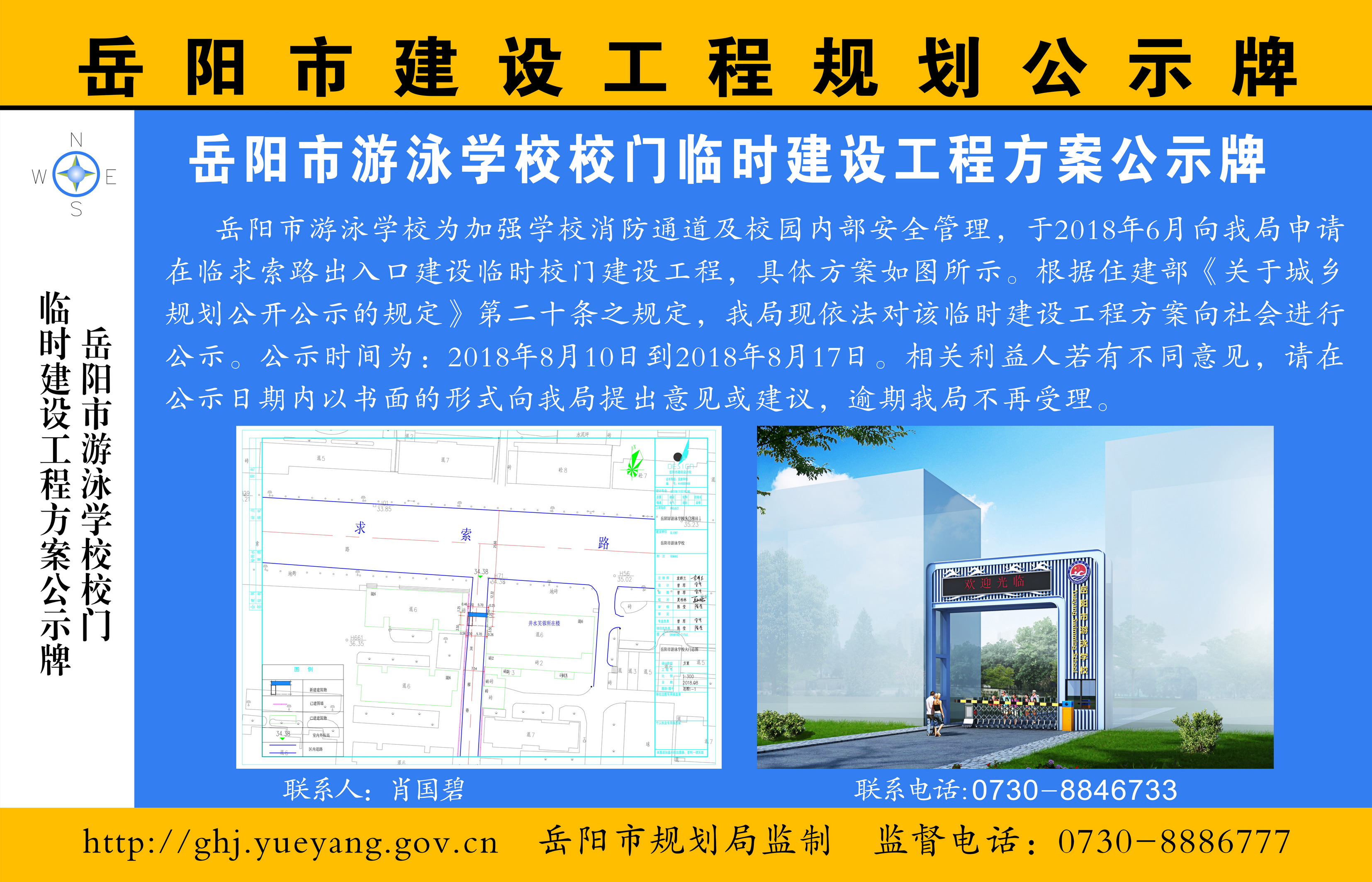 岳阳市游泳学校校门临时建设工程方案公示牌
