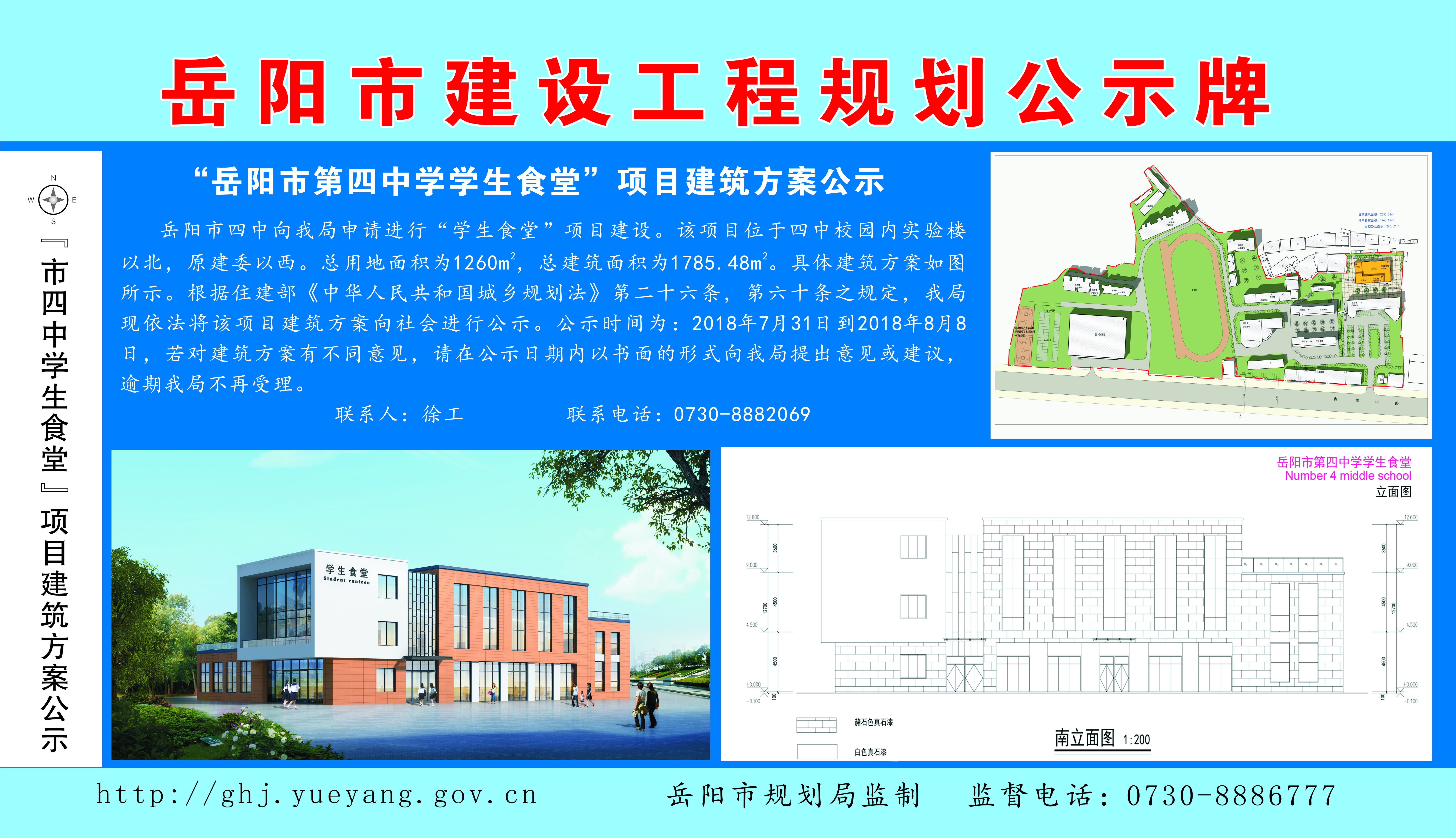 “岳阳市第四中学学生食堂”项目建筑方案公示