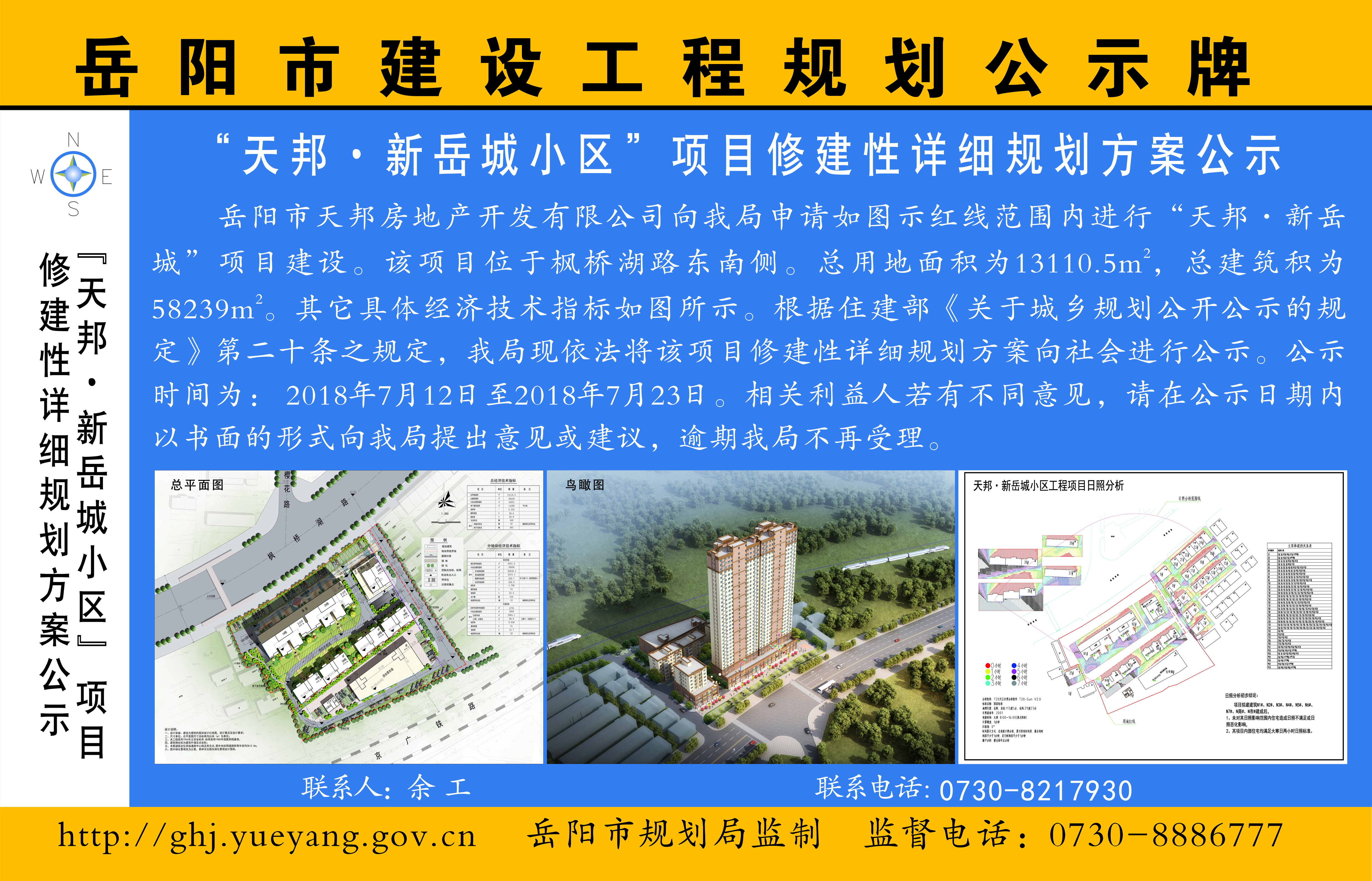 “天邦·新岳城小区”项目修建性详细规划方案公示