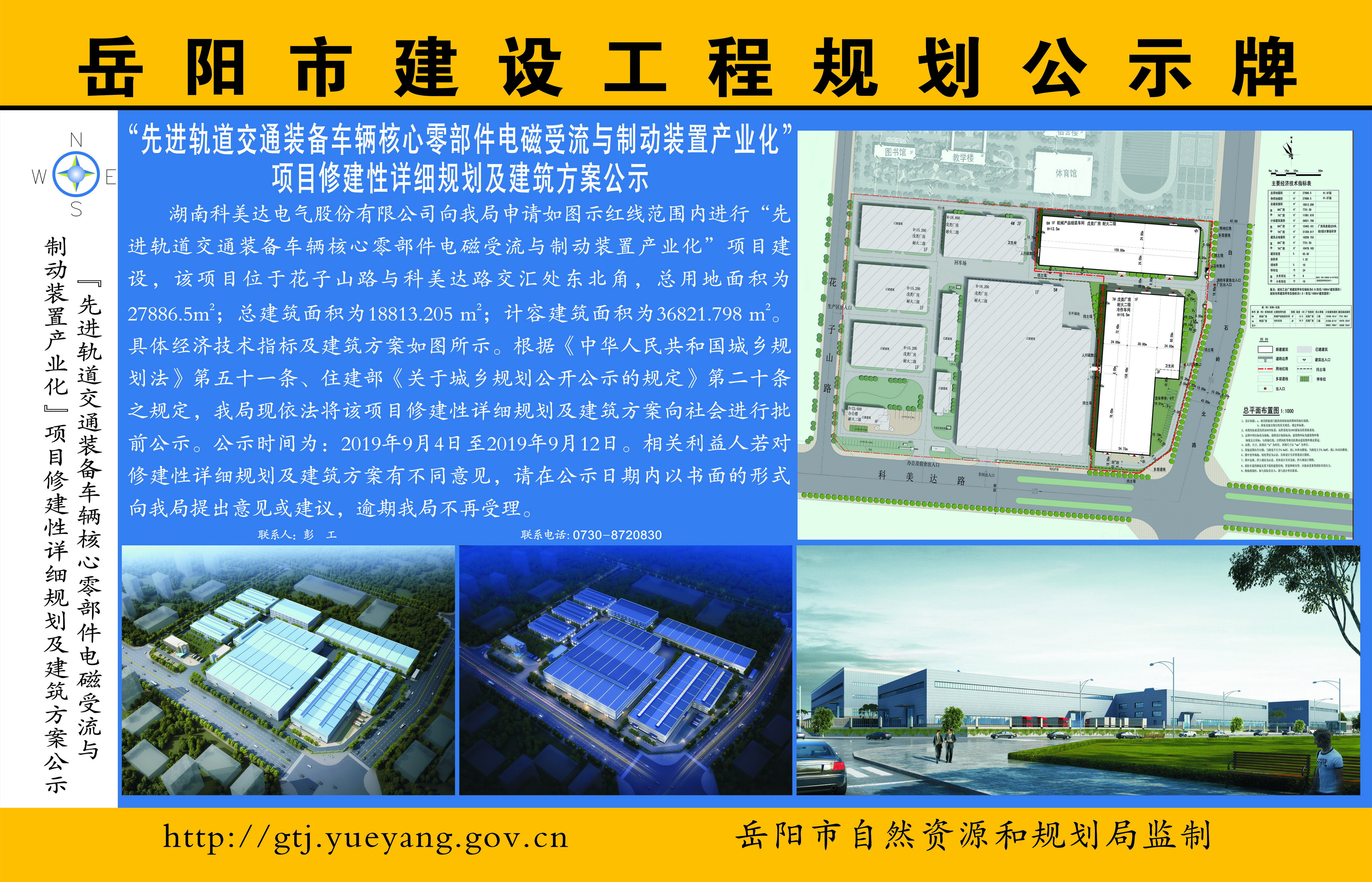 “先进轨道交通装备车辆核心零部件电磁受流与制动装置产业化”项目修建性详细规划及建筑方案公示