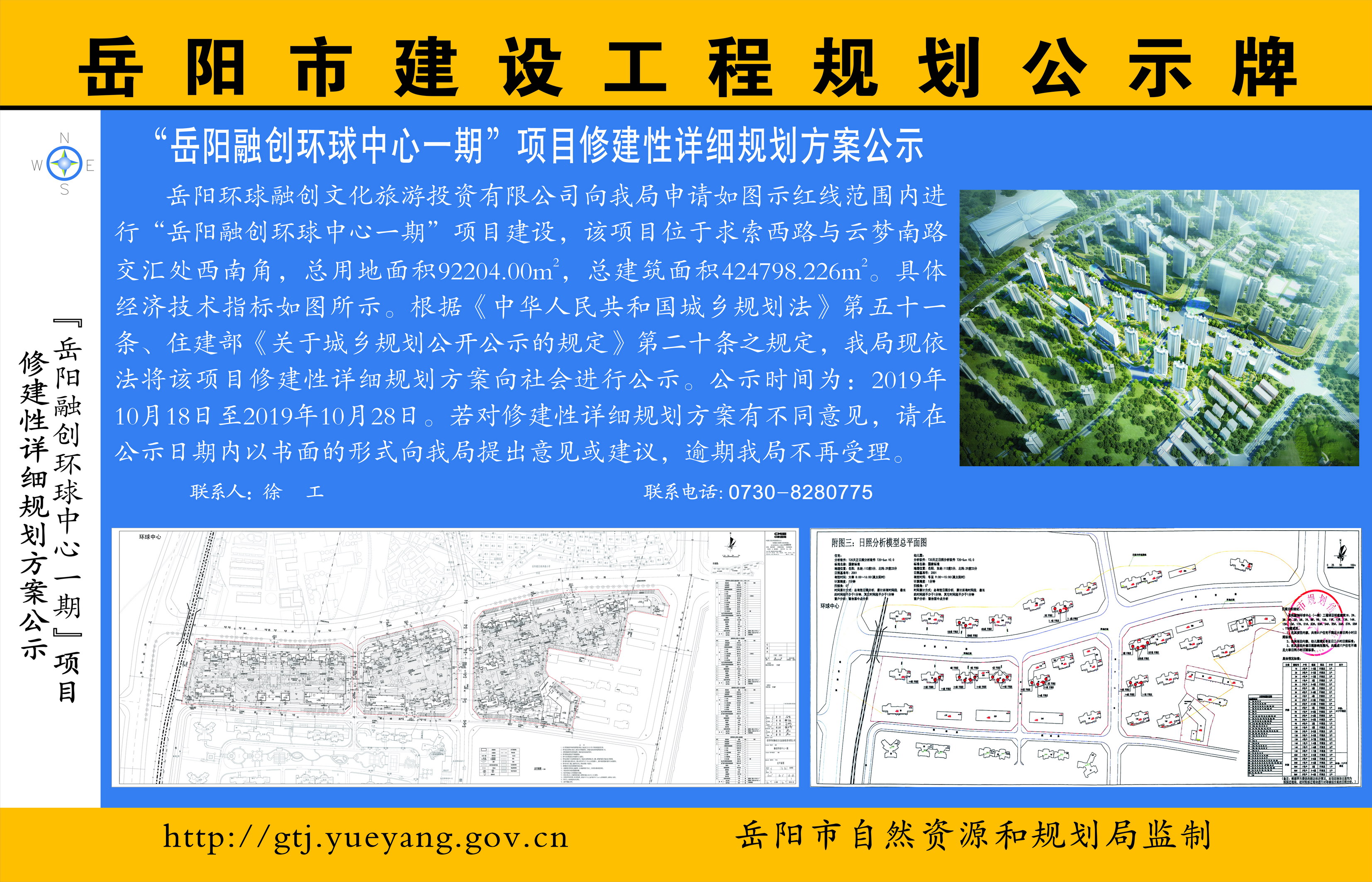 “岳阳融创环球中心一期”项目修建性详细规划方案公示