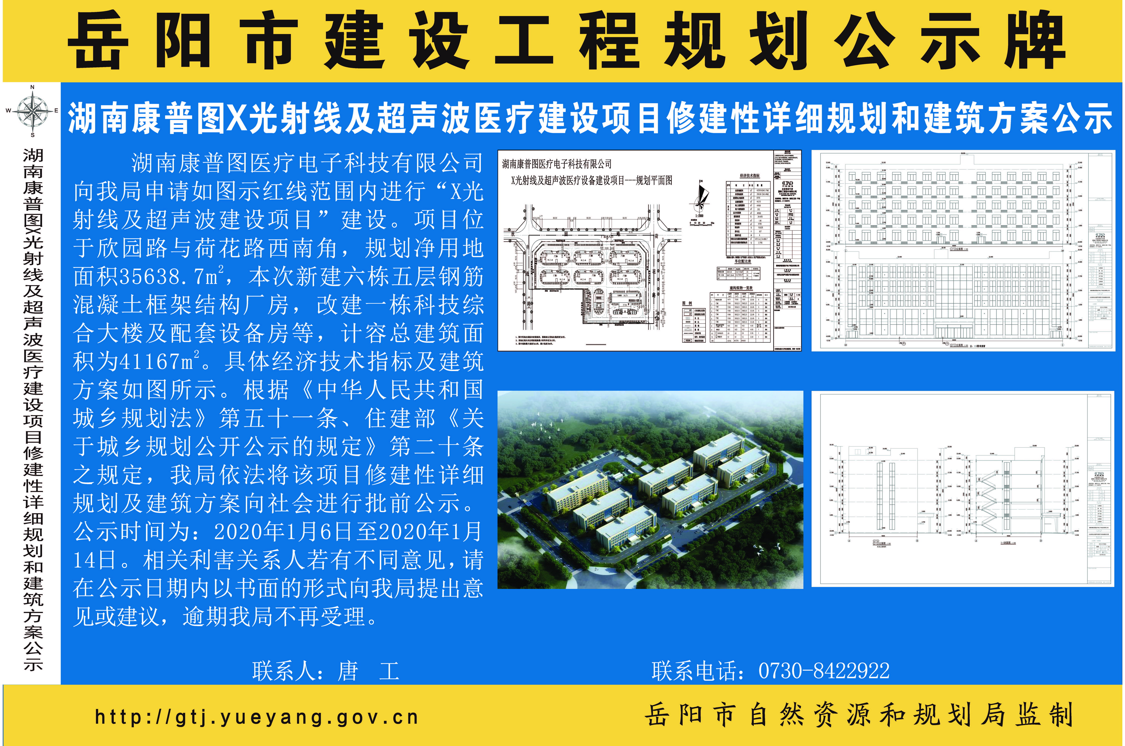 湖南康普图X光射线及超声波医疗建设项目修建性详细规划和建筑方案公示