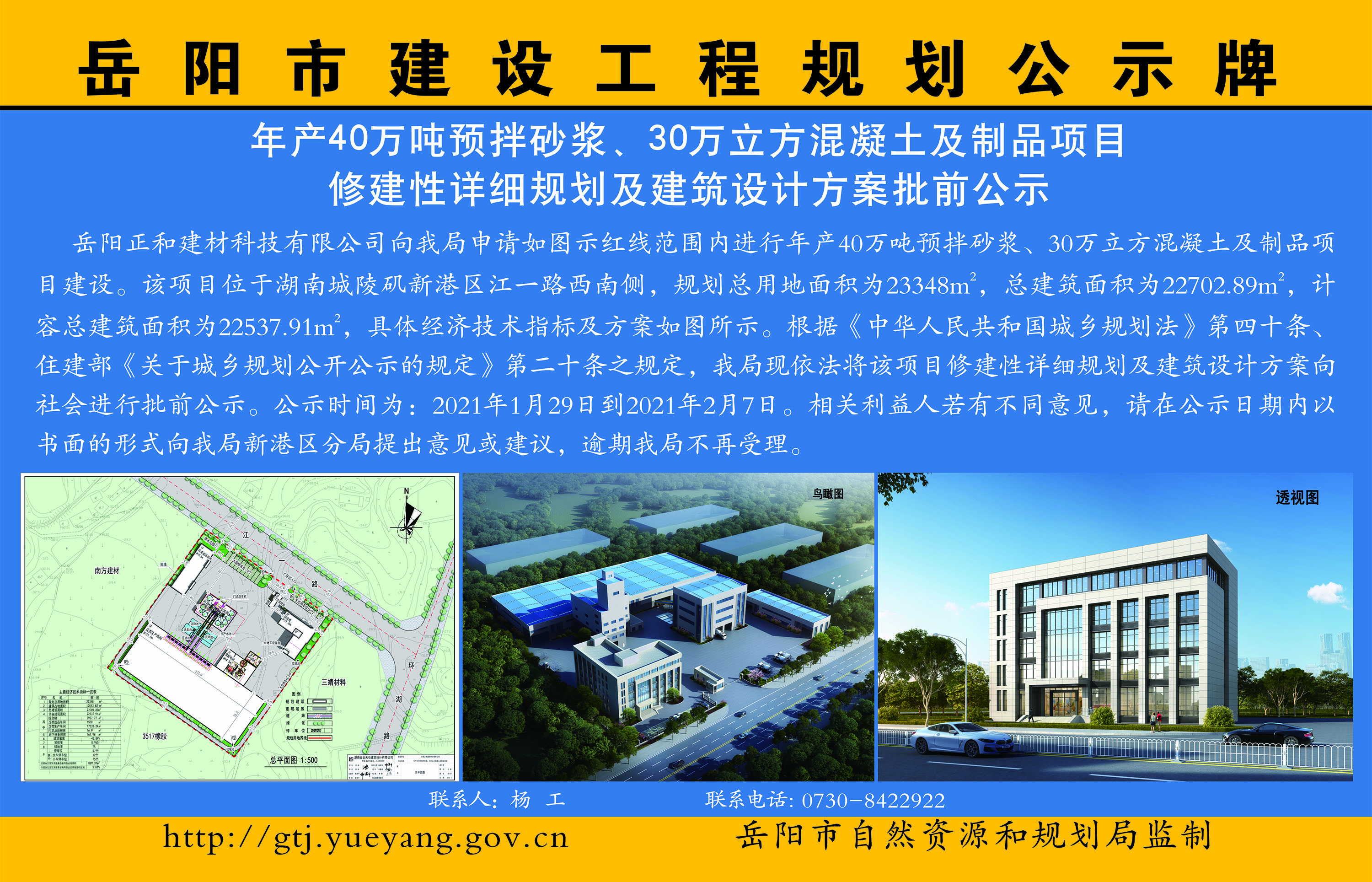 年产40万吨预拌砂浆、30万立方混凝土及制品项目修建性详细规划及建筑设计方案批前公示