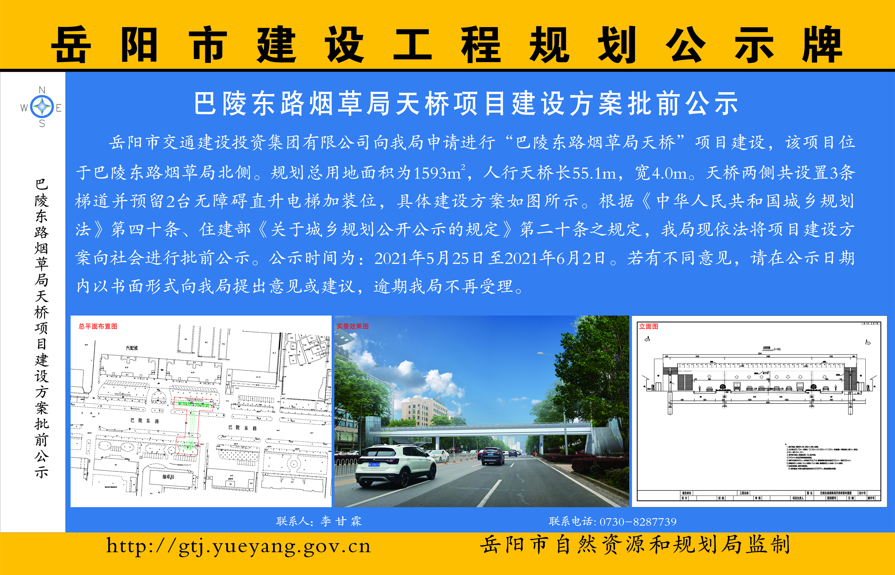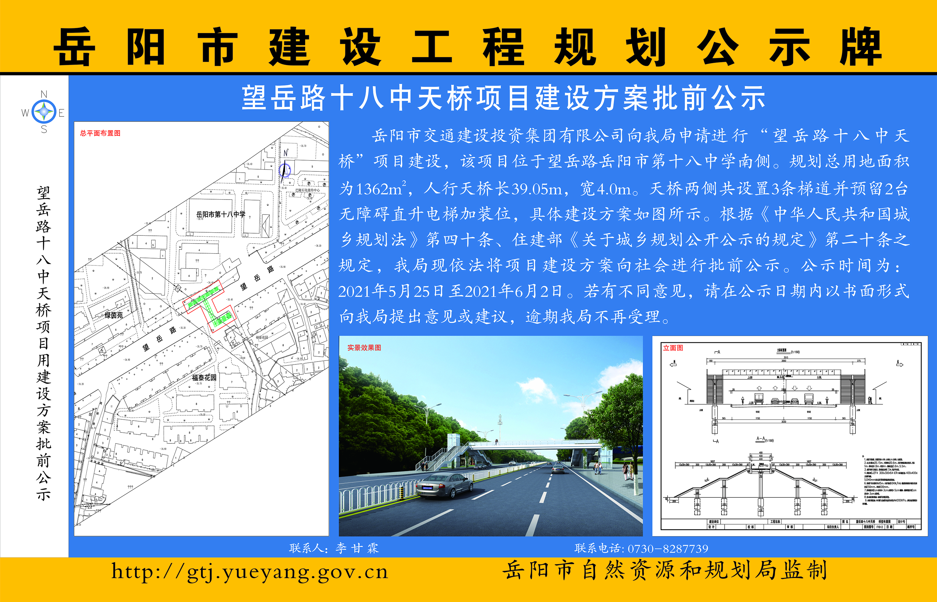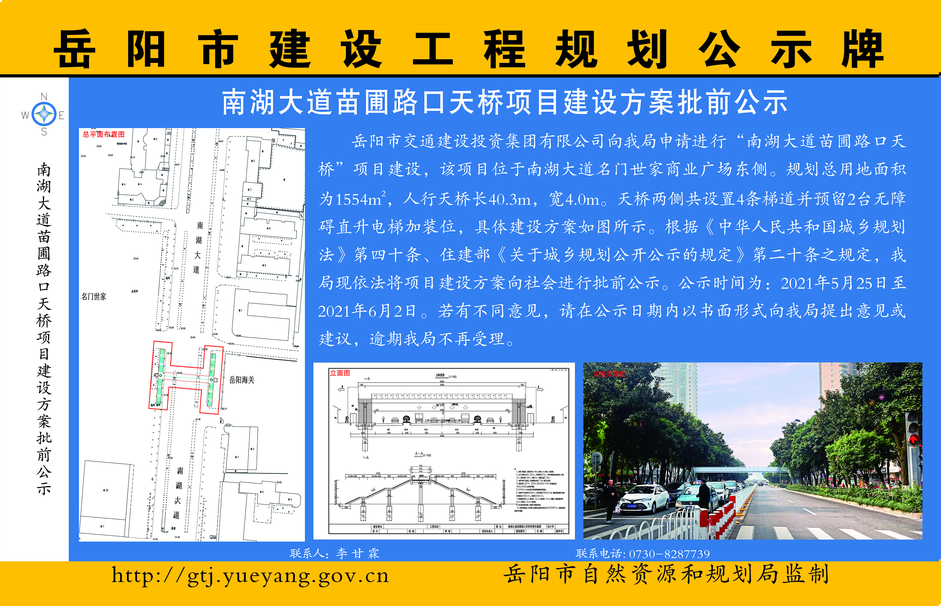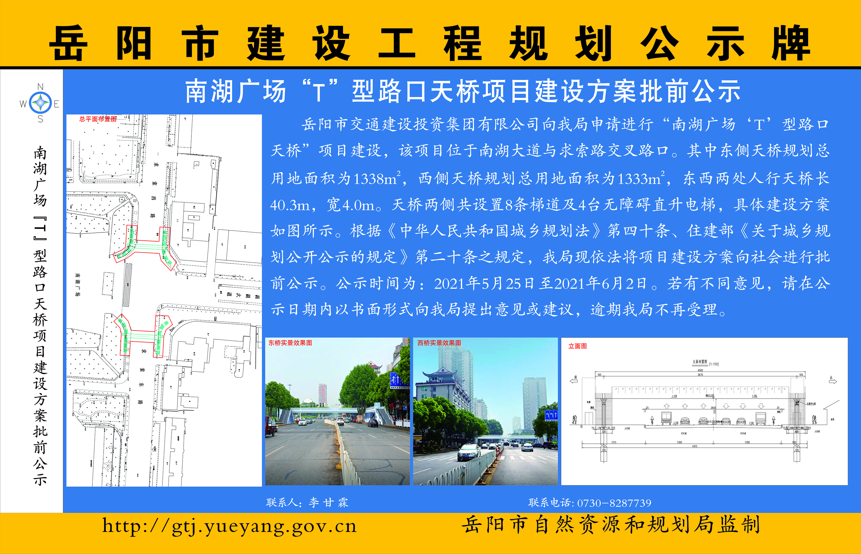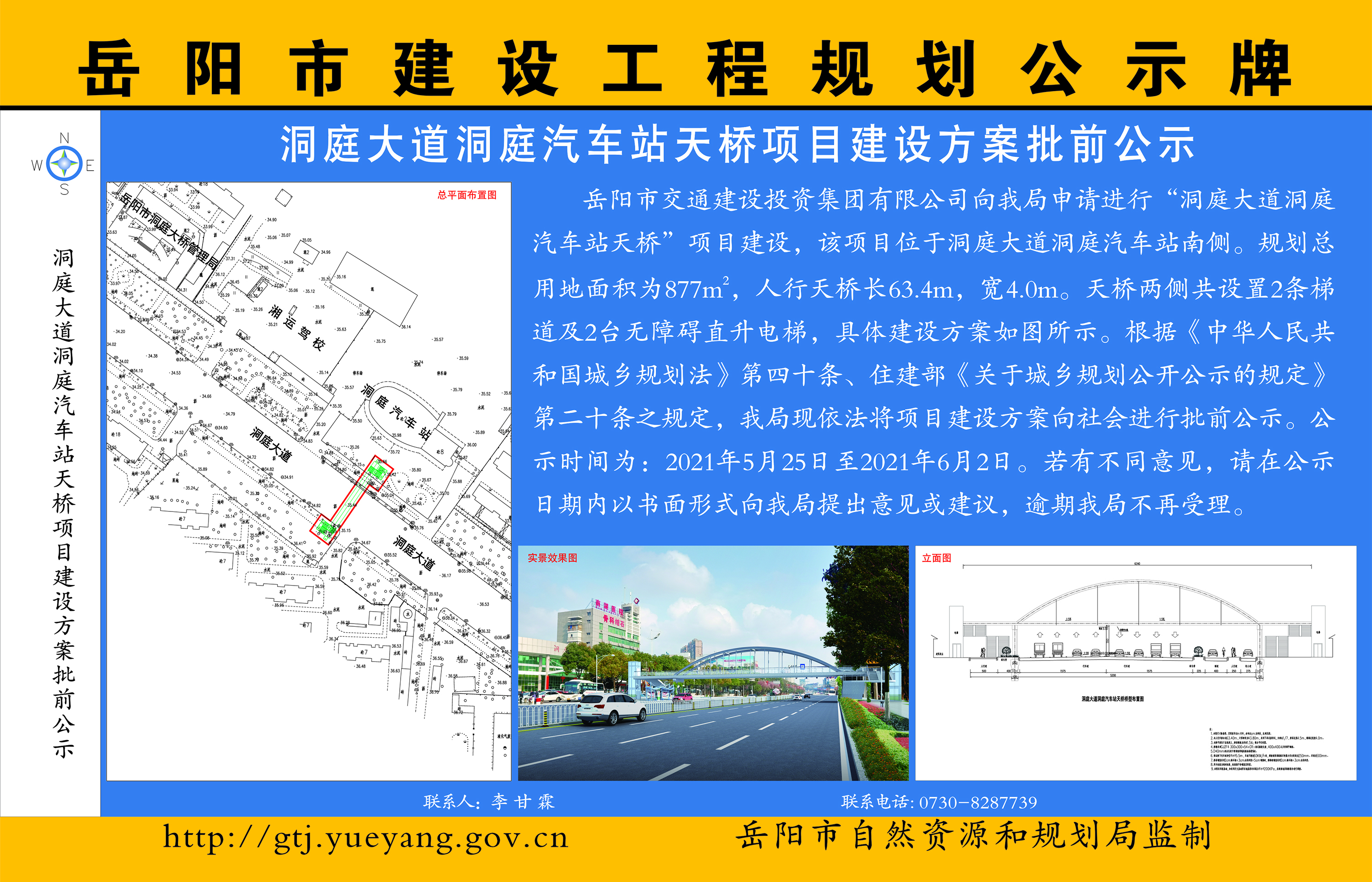 建湘路大润发、洞庭汽车站等八处人行天桥项目建设方案批前公示